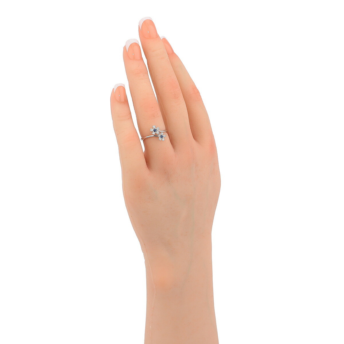 サファイアのブルーと、ダイヤモンドが咲き誇る花のように煌めくデザイン。緩やかな曲線が描くフォルムが指先を美しく見せ、華やかで上品な印象に。普段使いから特別な日のおしゃれまで、幅広く活躍するアイテムです。