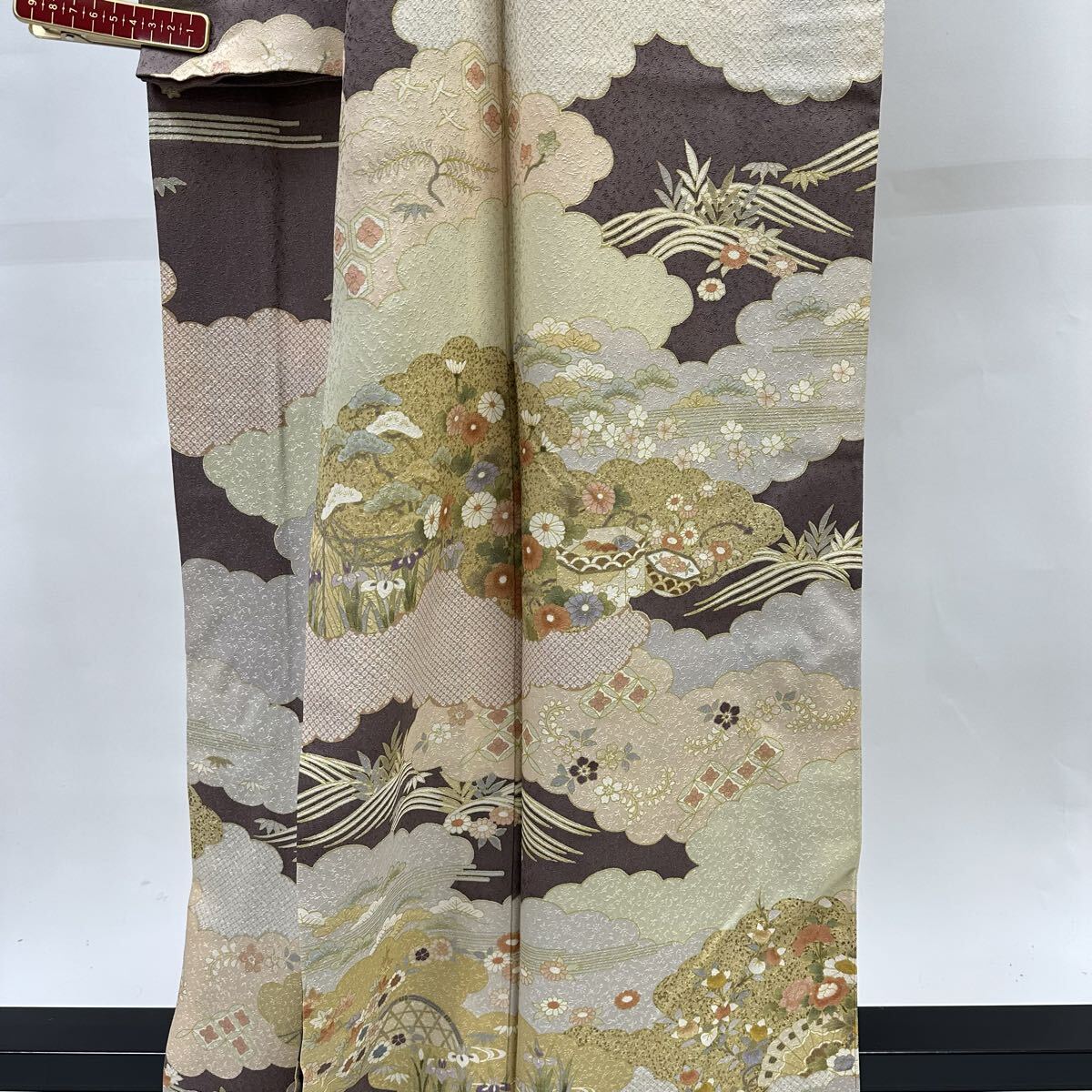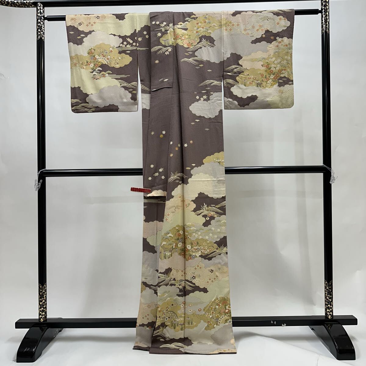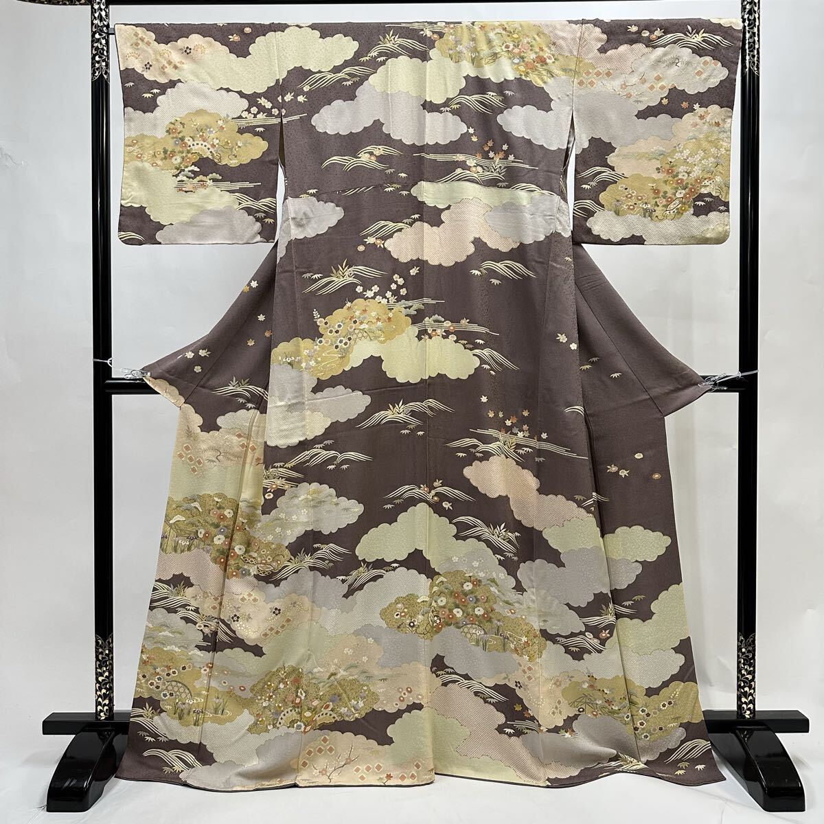 【七福】c873 訪問着 正絹 古典柄 雲取 松竹梅 風景 地模様 暗文 袷仕立て 着物 逸品 身丈 約166cm 裄 約65.5cm
