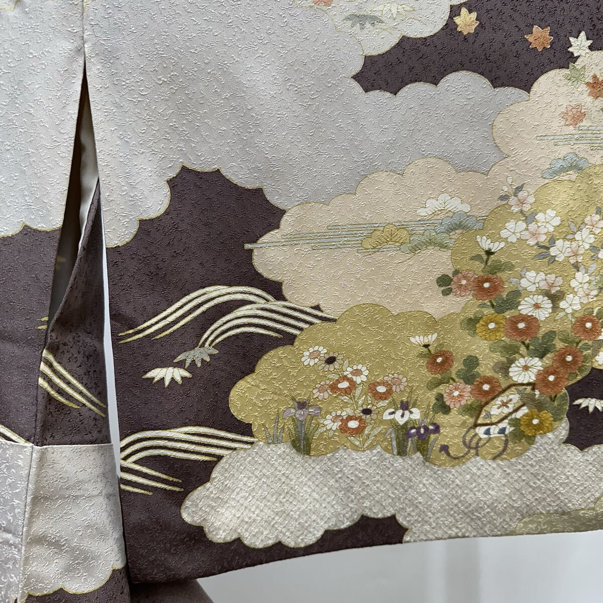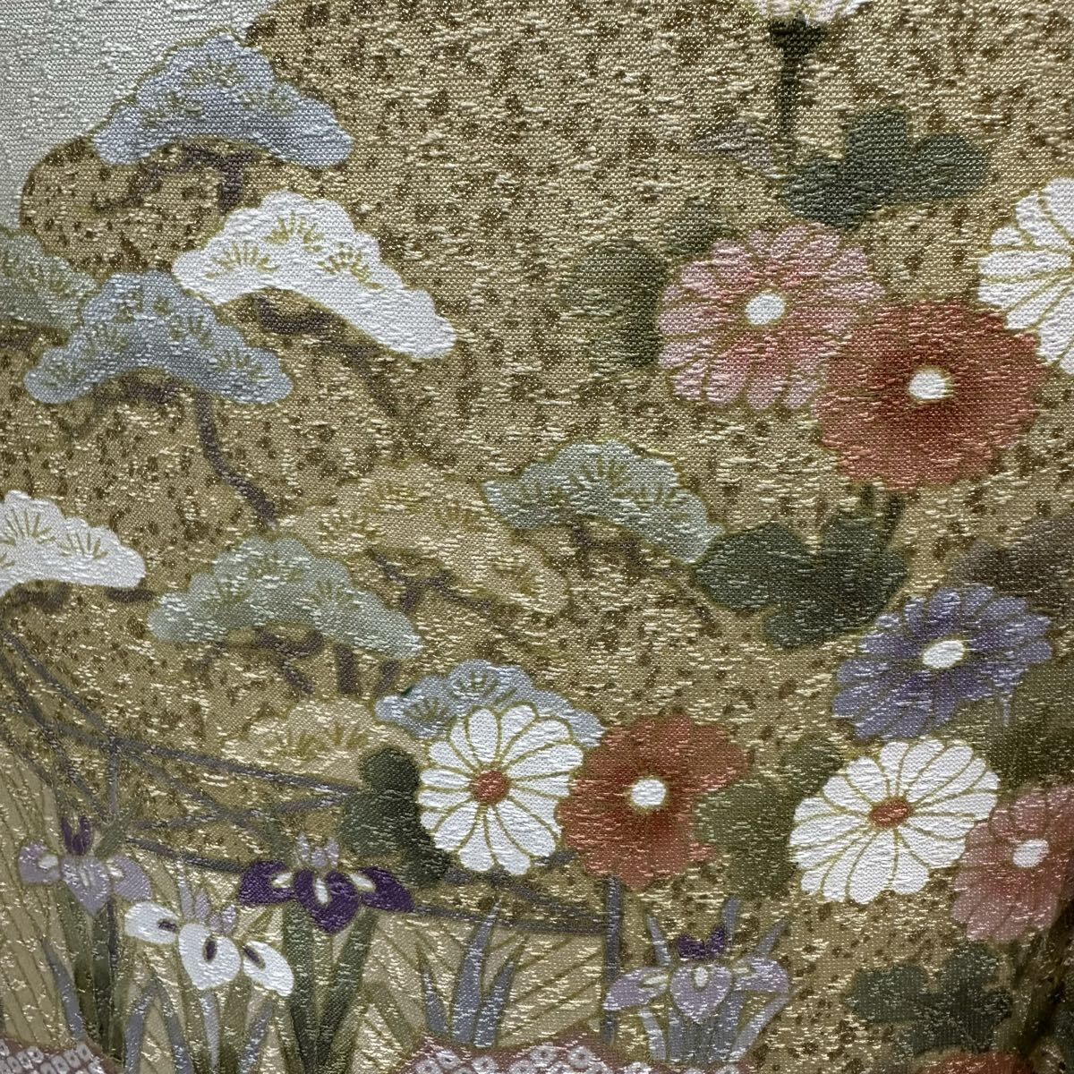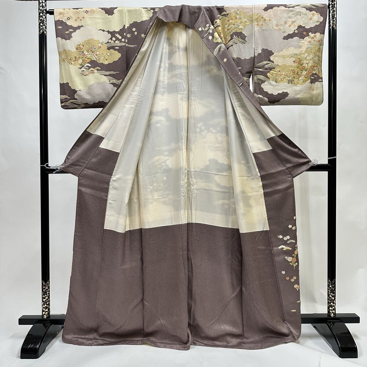 【七福】c873 訪問着 正絹 古典柄 雲取 松竹梅 風景 地模様 暗文 袷仕立て 着物 逸品 身丈 約166cm 裄 約65.5cm