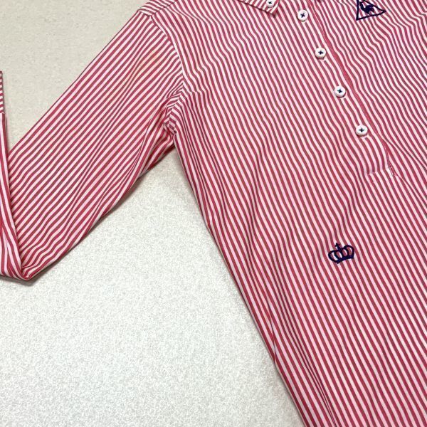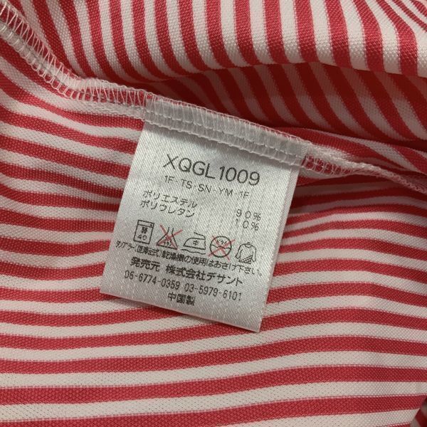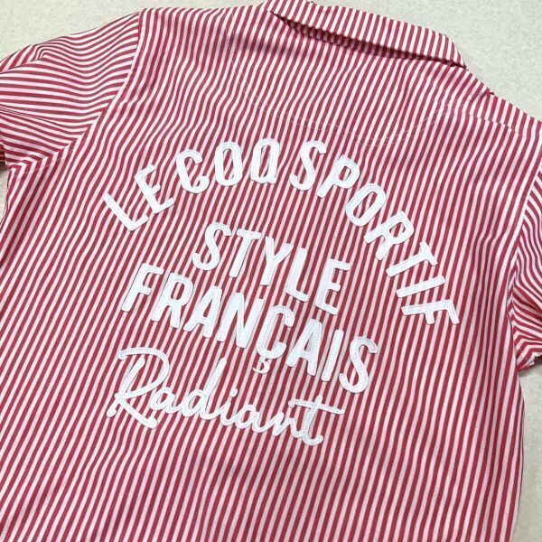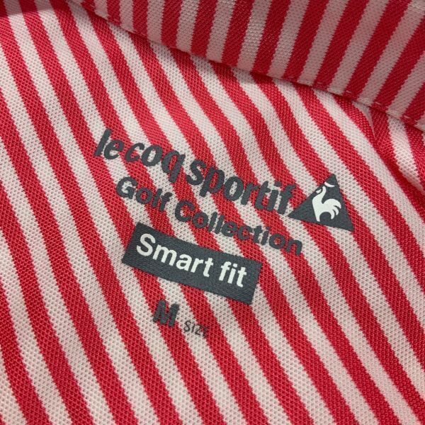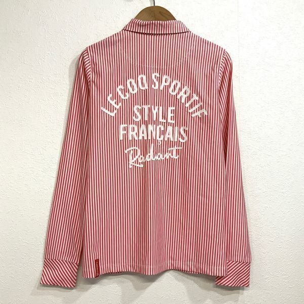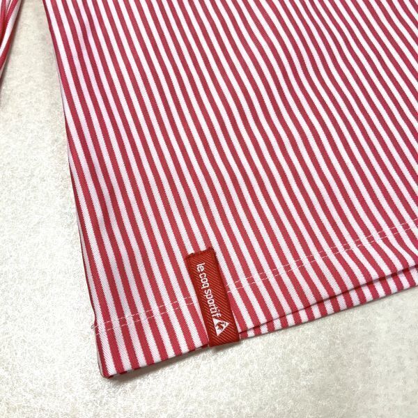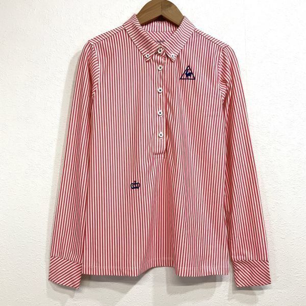 美品 le coq sportif golf ルコックスポルティフゴルフ ストライプ 刺繍 長袖 ポロシャツ レディーズ Sサイズ レッド ホワイト GOLF