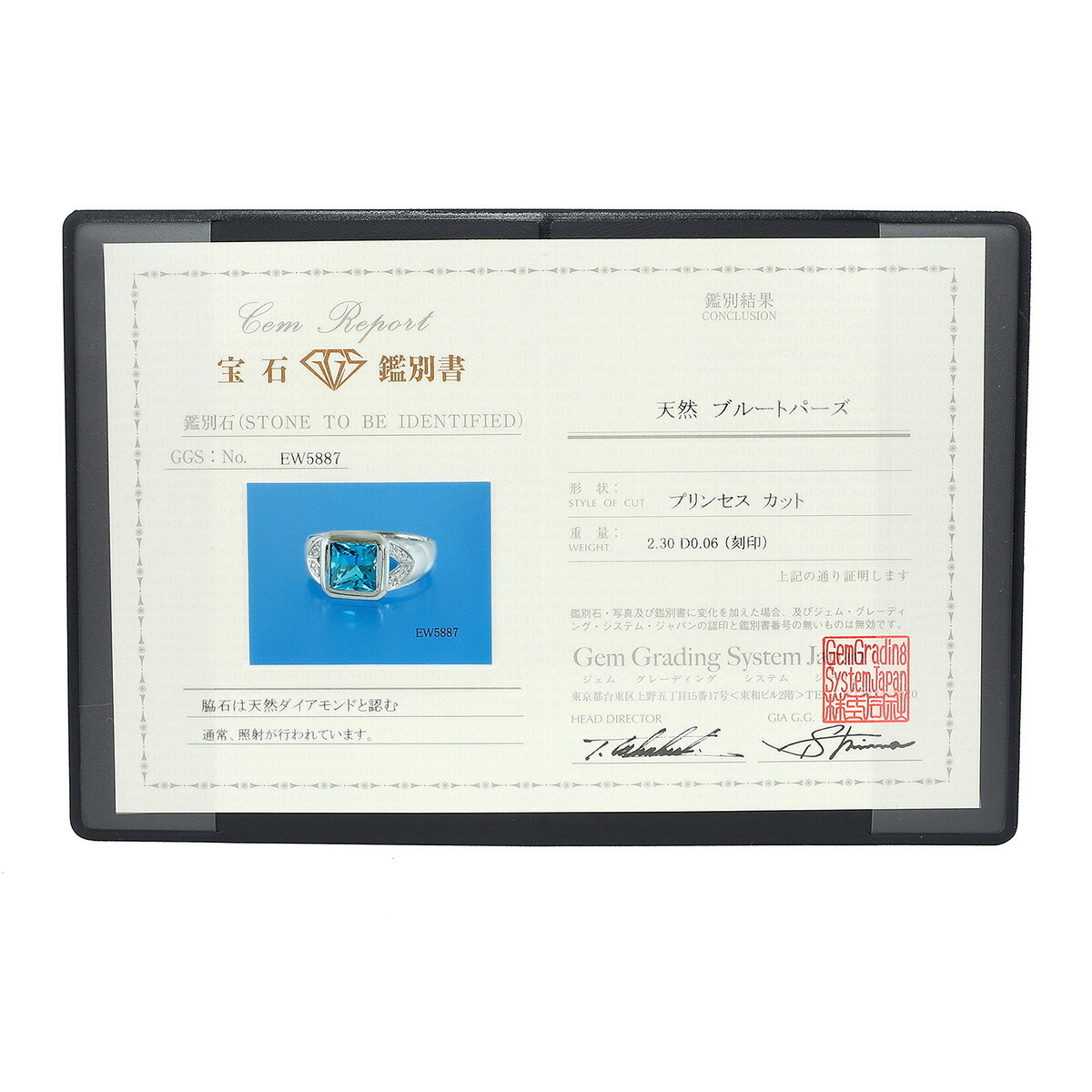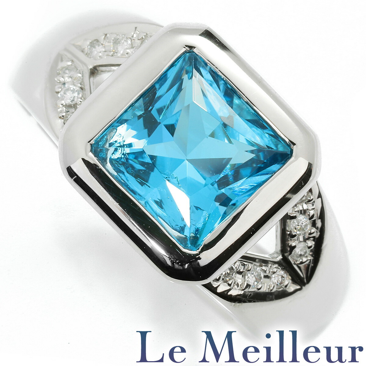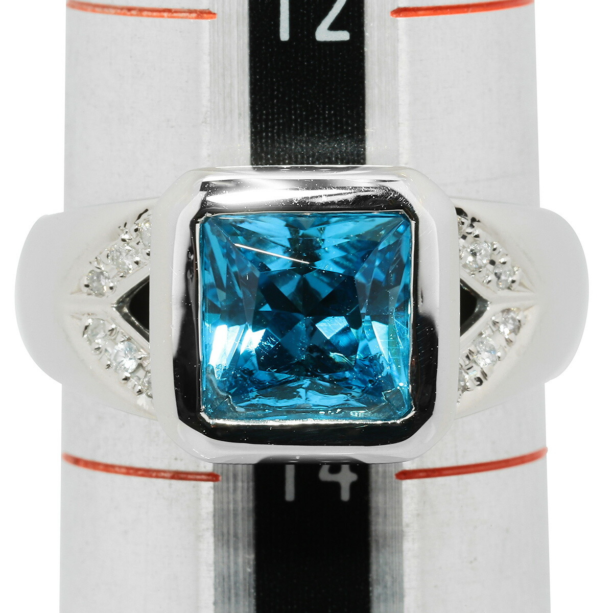 プリンセスカットのブルートパーズに、ダイヤモンドのきらめきが寄り添うラグジュアリーなリング。ダイヤモンドの煌めきがアクセントを添え、指先を優雅に彩ります。