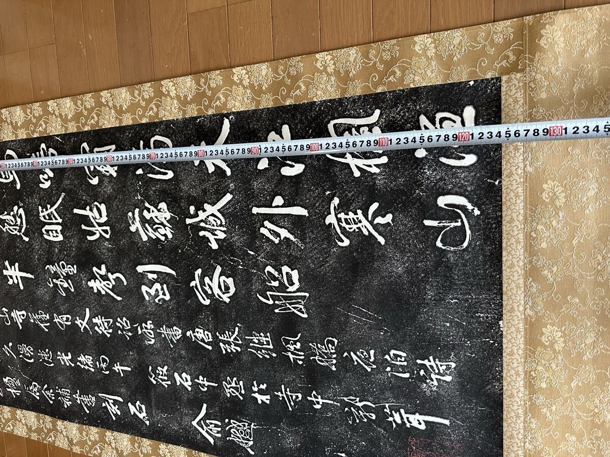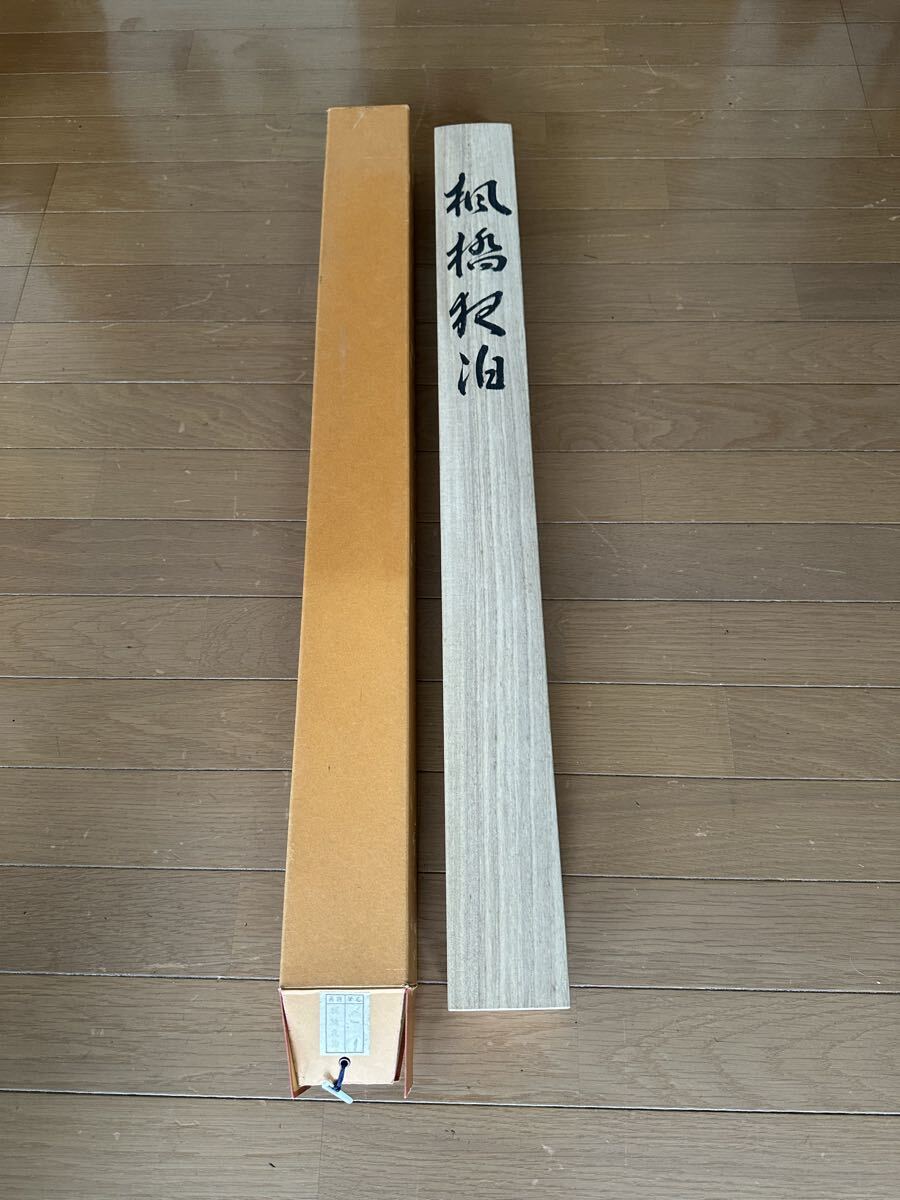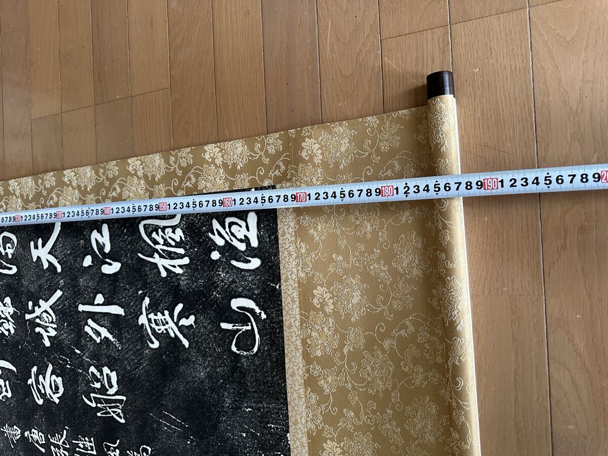 絹表装 紙本 掛軸 寒山寺楓橋夜泊詩 大幅 拓本 箱入り、状態が良く、黒檀画。