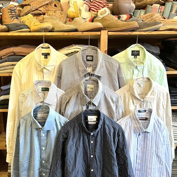 1点物◆Marc New York長袖ストライプシャツ古着LメンズXLレディースOKアメカジブランド90sストリート/スポーツ中古モードブランド349938