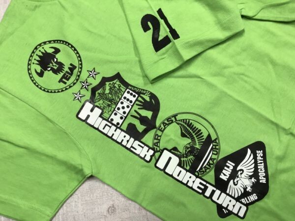 OUCH AND GO製 アメカジ ストリート ハイリスク ノー リターン HIGH RISK NO RETURN 半袖Tシャツ メンズ コットン100% S 黄緑 です。