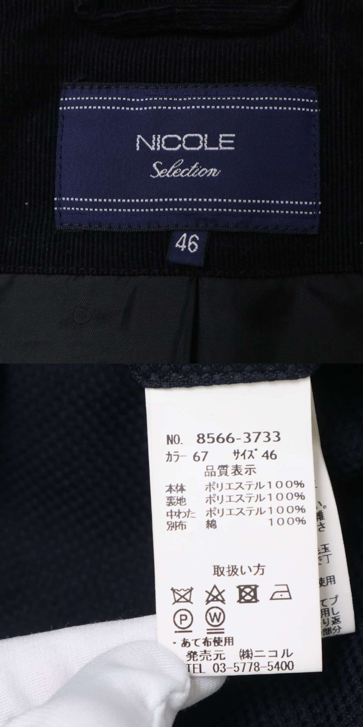 NICOLE Selection ニコル セレクション 秋冬 中綿★ スタンドカラー コート Sz.46 メンズ 紺 ネイビー