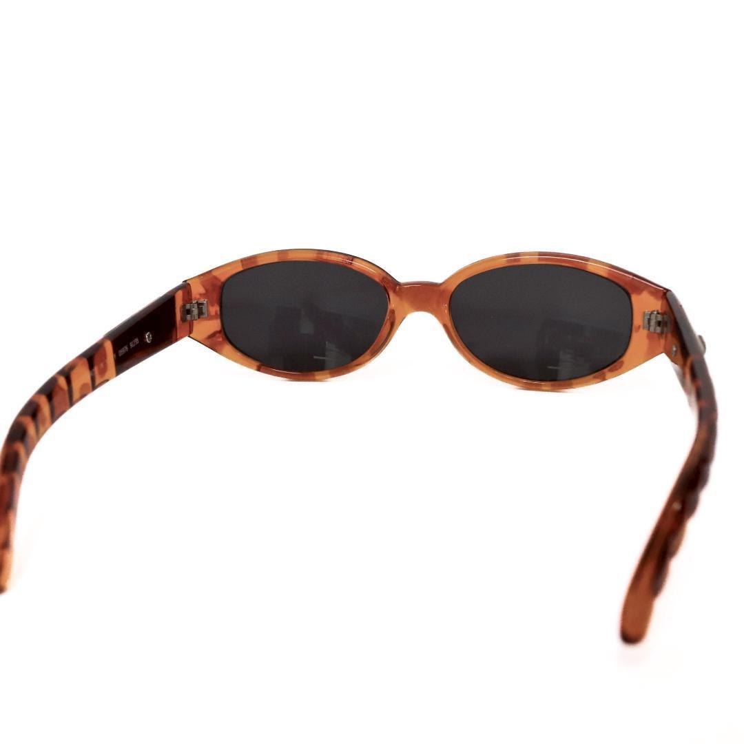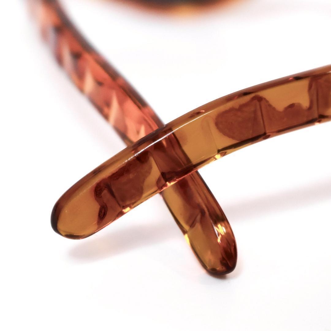 フレームは温かみのあるデミブラウンで、テンプルにはシルバーのココマークを配し、さりげなくブランドの気品を演出します。シンプルながらもラグジュアリーな印象で、カジュアルからエレガントなスタイルまで幅広くマッチする万能デザインです。