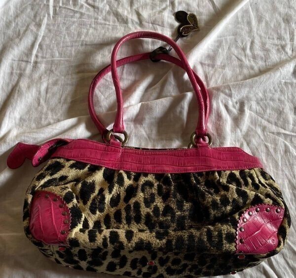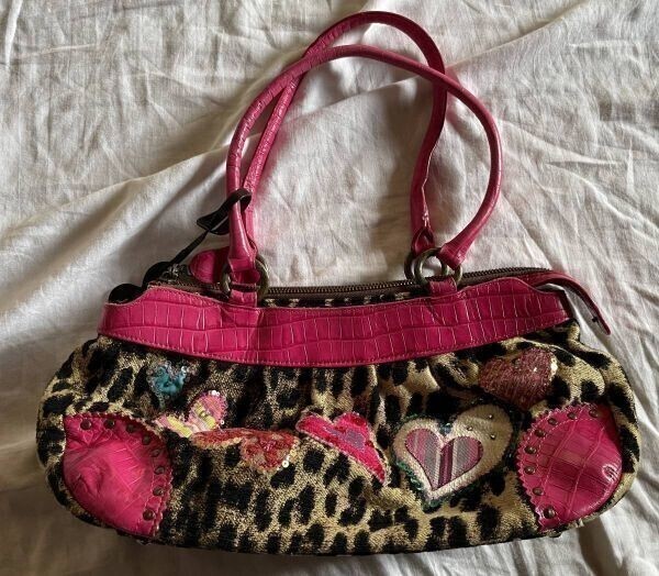 シンクビー/Think Bee!*アニマルハート*レオパード柄*クロコ型押しレザー*ショルダーバッグ*肩掛け 定番柄 保管品