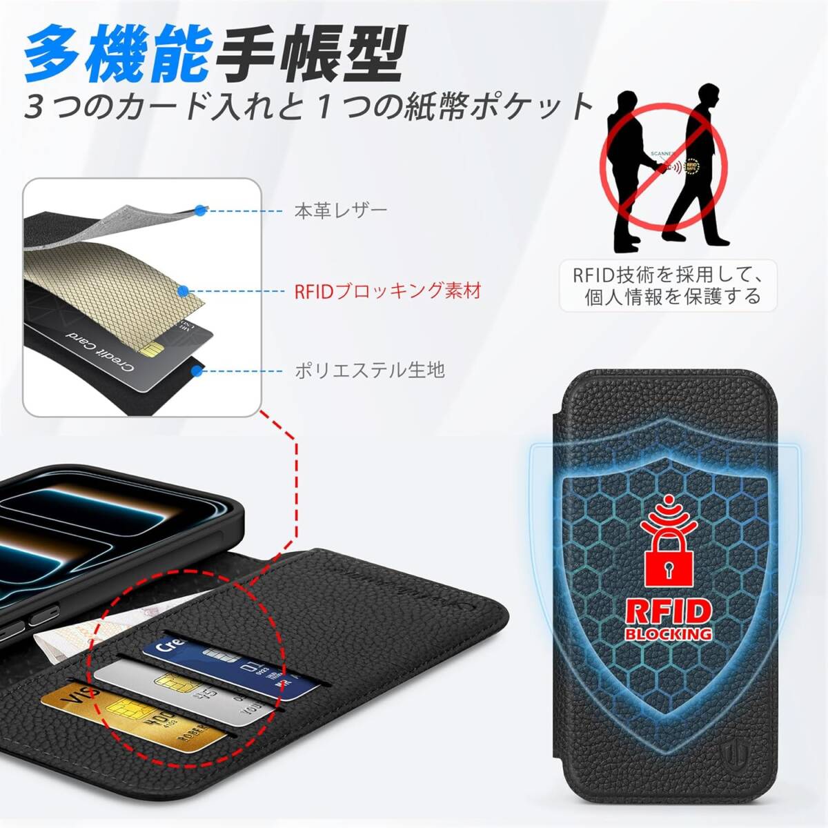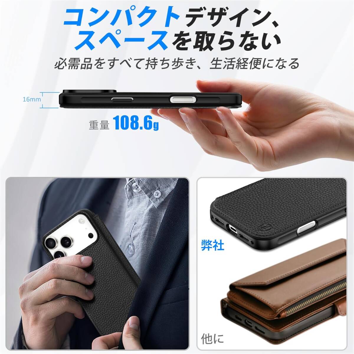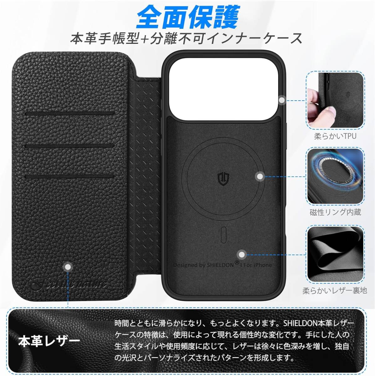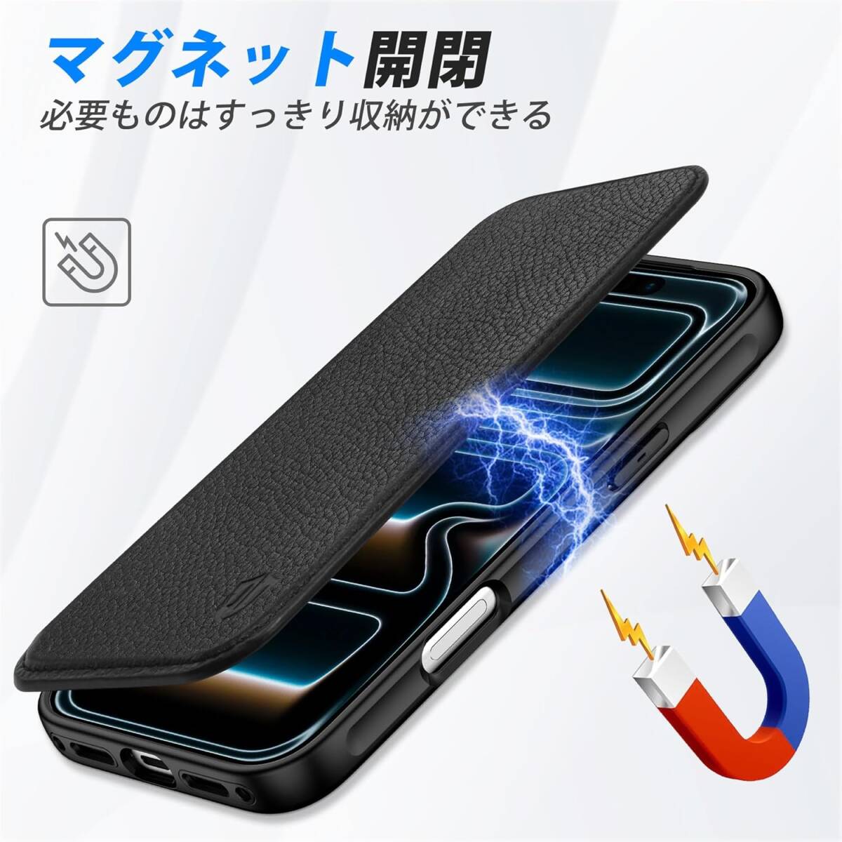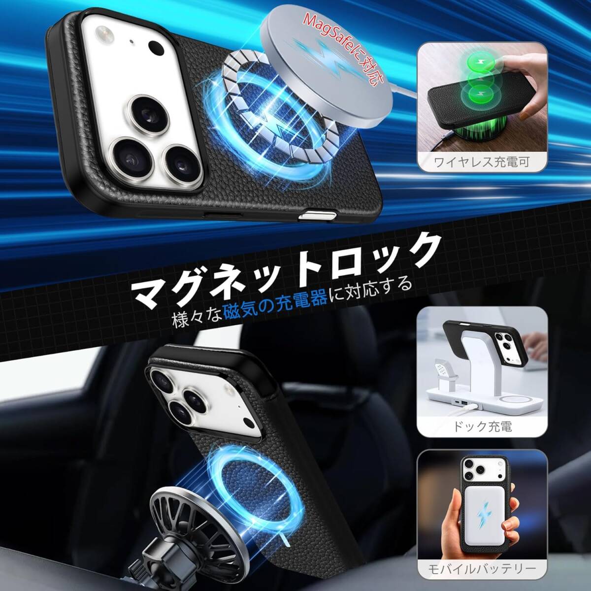 iPhone 17ProMax 手帳型ケース 本革レザー 6.9インチ ワイヤレス充電 Magsafe対応 RFIDブロッキング カード収納 ストラップ穴付き