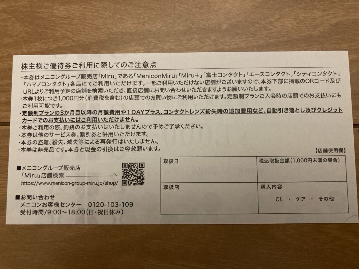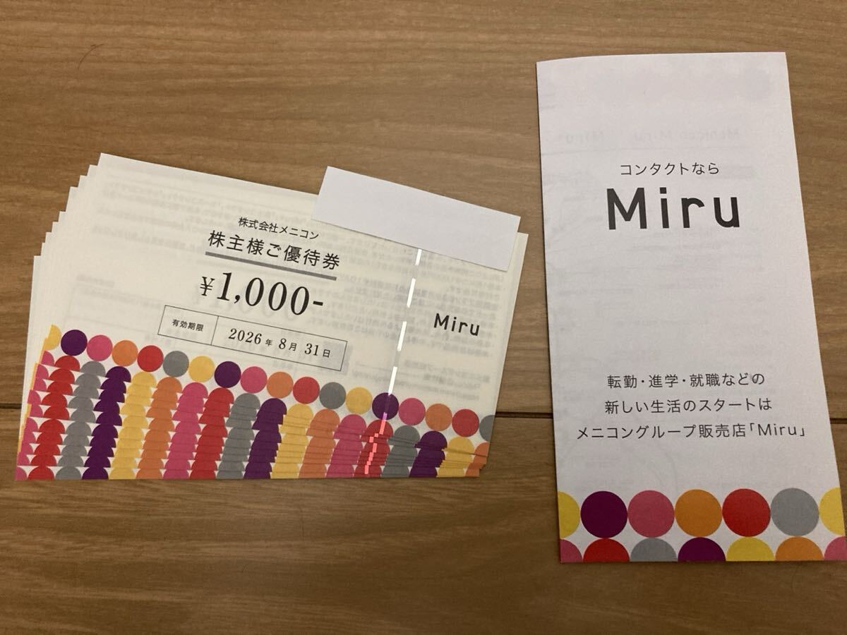(ミニレター85円)メニコン株主優待券10000円分)(1000円券×10枚)(有効期限2026年8月31日迄)コンタクトレンズ