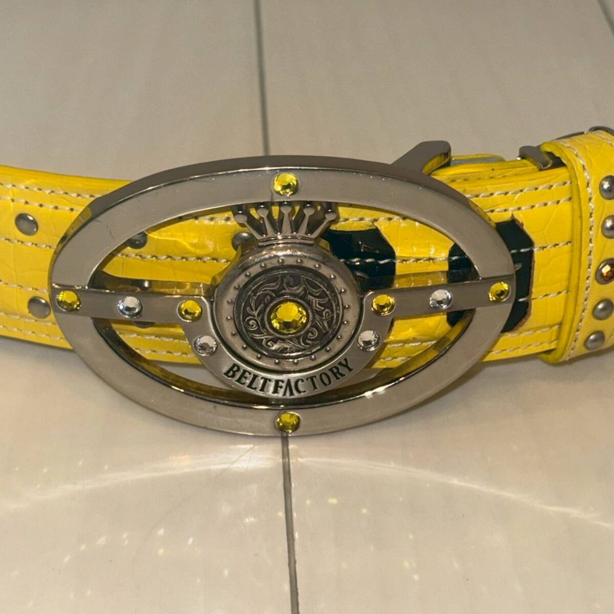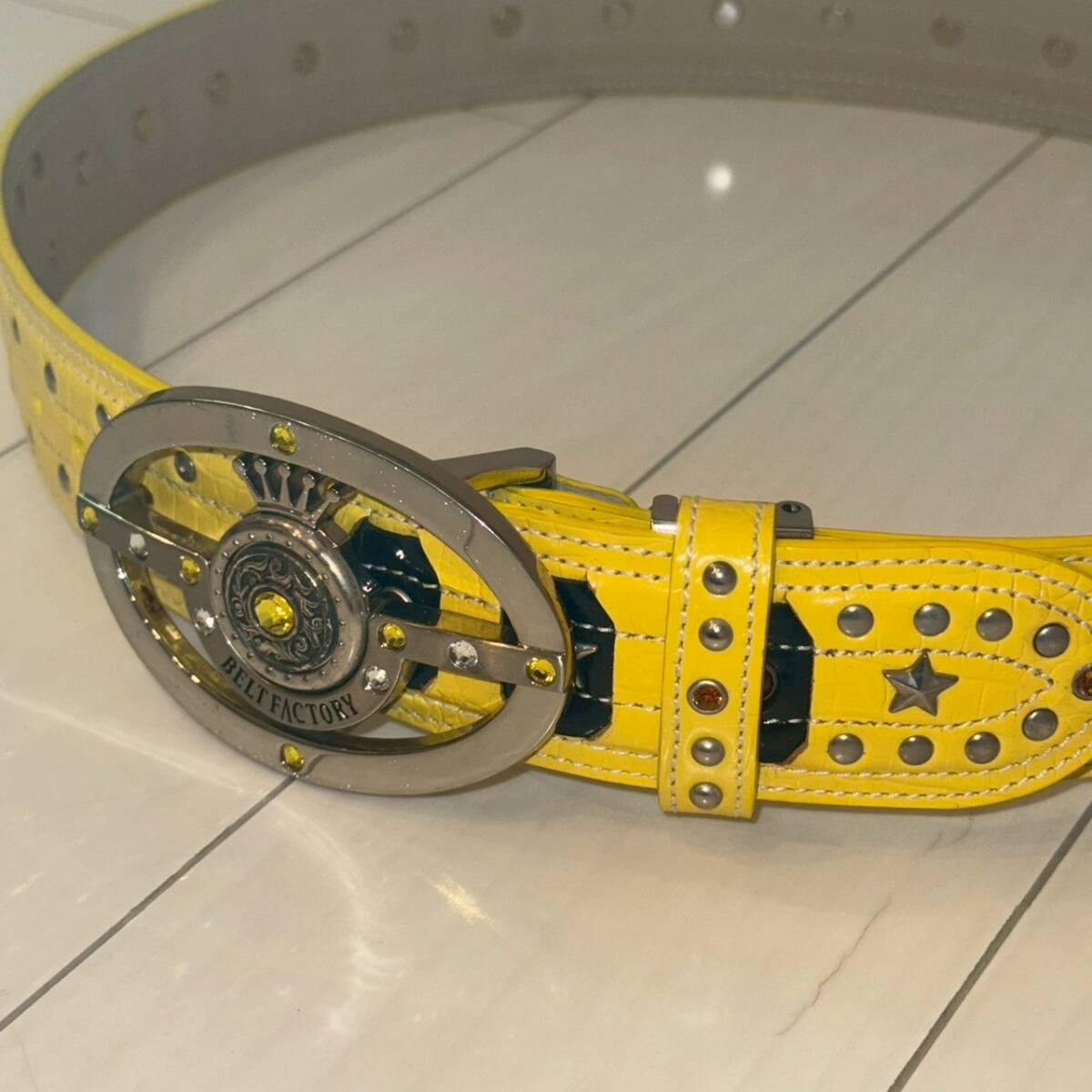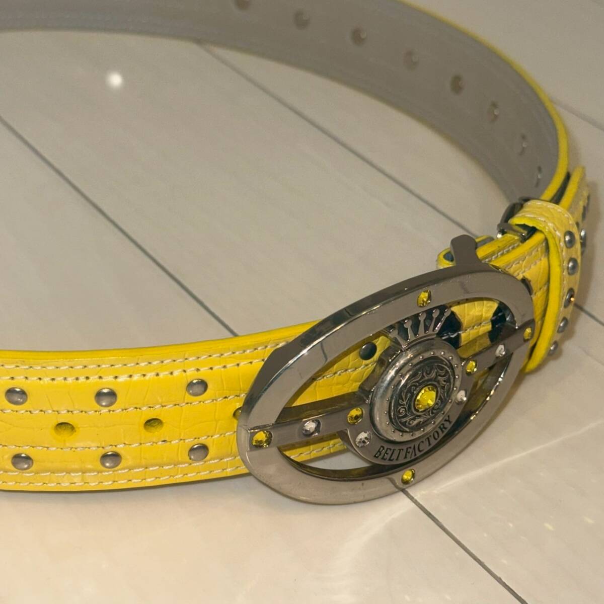 ♪ゴルフに◆BELT FACTORY/ベルトファクトリー◆ラインストーンデザインベルト◆全長106㎝/幅3.9㎝♪検)プレミアム/スワロ/レターパック可