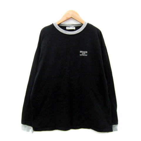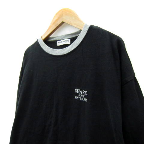 ロデオクラウンズ Rodeo Crowns カットソー Tシャツ 長袖 ラウンドネック 無地 刺繍 F 黒 ブラック /SY33 メンズ