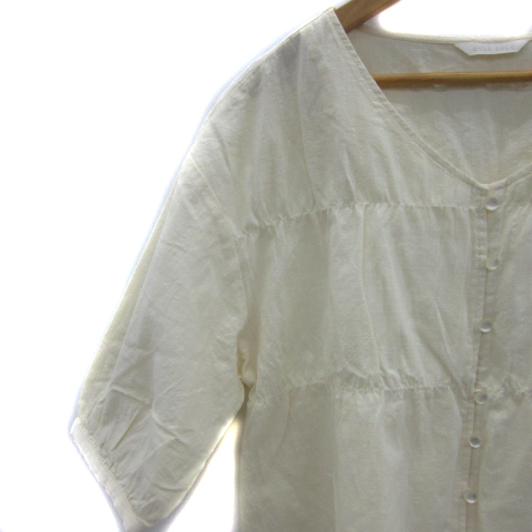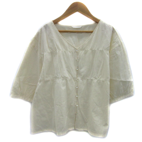 エヘカソポ サマンサモスモス ehka sopo SM2 ブラウス シャツ 五分袖 Vネック 無地 F アイボリー /YS30 レディース