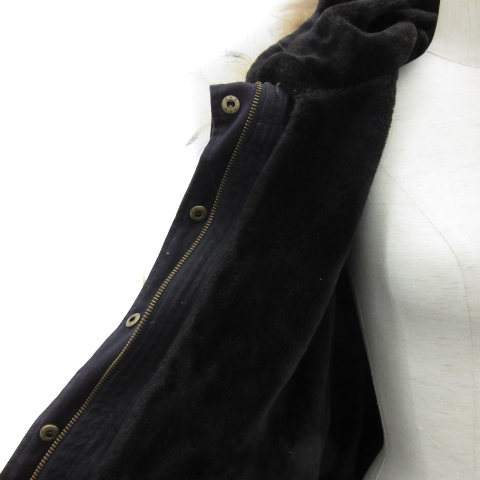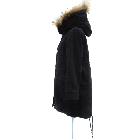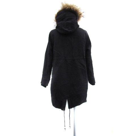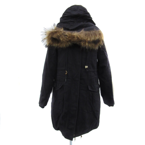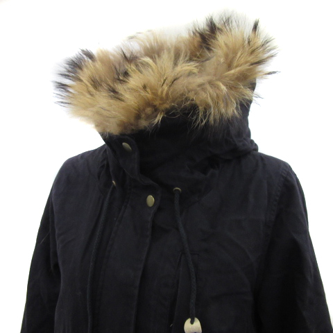 ローリーズファーム LOWRYS FARM モッズコート ミリタリーコート ロング丈 ファーフード付き L 黒 ブラック /YS2 レディース