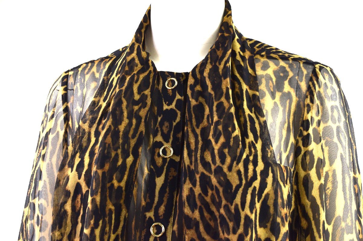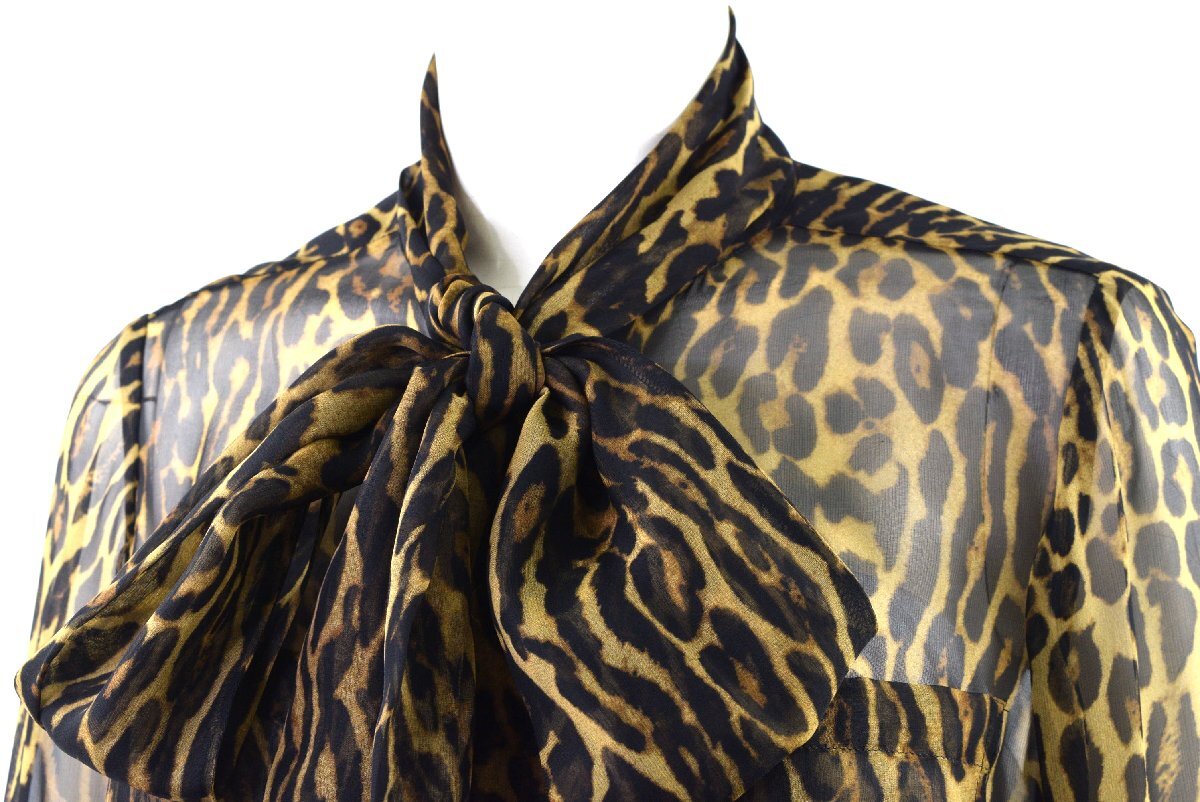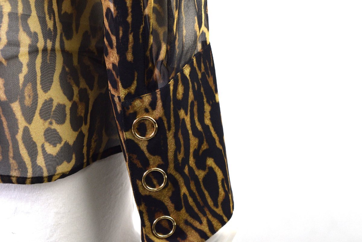 1265-25Q0096★BURBERRY LONDON バーバリー 美品★リボンタイ シルクブラウス UK6 レオパードプリント ふんわりシフォン生地