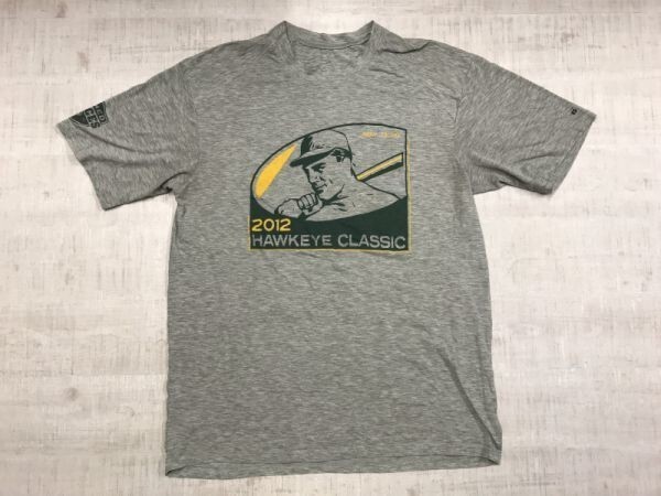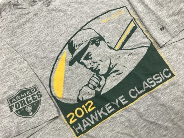 2012 HAWKEYE CLASSIC ロゴ バックプリント オールド レトロ アメカジ 古着 野球 スポーツ 半袖Tシャツ メンズ グレー