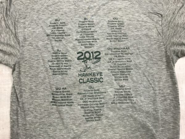 2012 HAWKEYE CLASSIC ロゴ バックプリント オールド レトロ アメカジ 古着 野球 スポーツ 半袖Tシャツ メンズ グレー です。