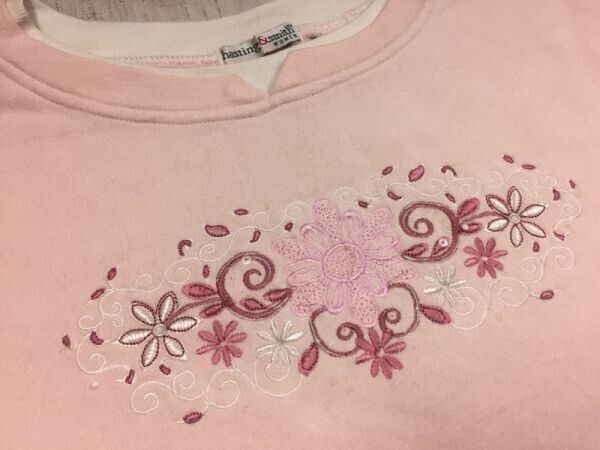 ヘイスティングアンドスミス hasting & smith 花柄 刺繍 レトロ ファンシー フォークロア スウェット トレーナー レディース 2X ピンク です。