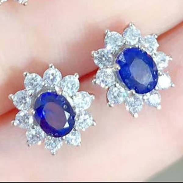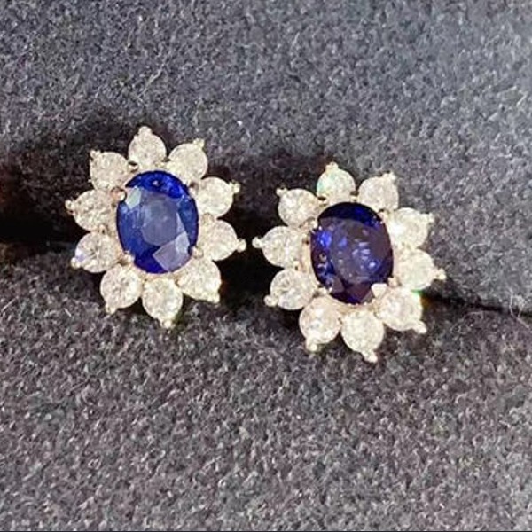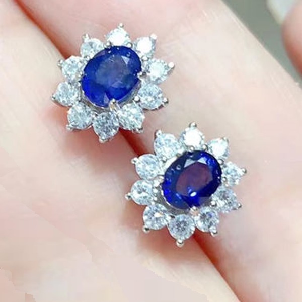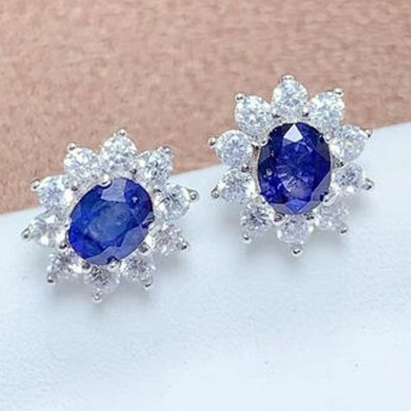 天然サファイア スタッド ピアス 4mmx5mm アレルギーフリー 18K ゴールド メッキジュエリー 日常着用