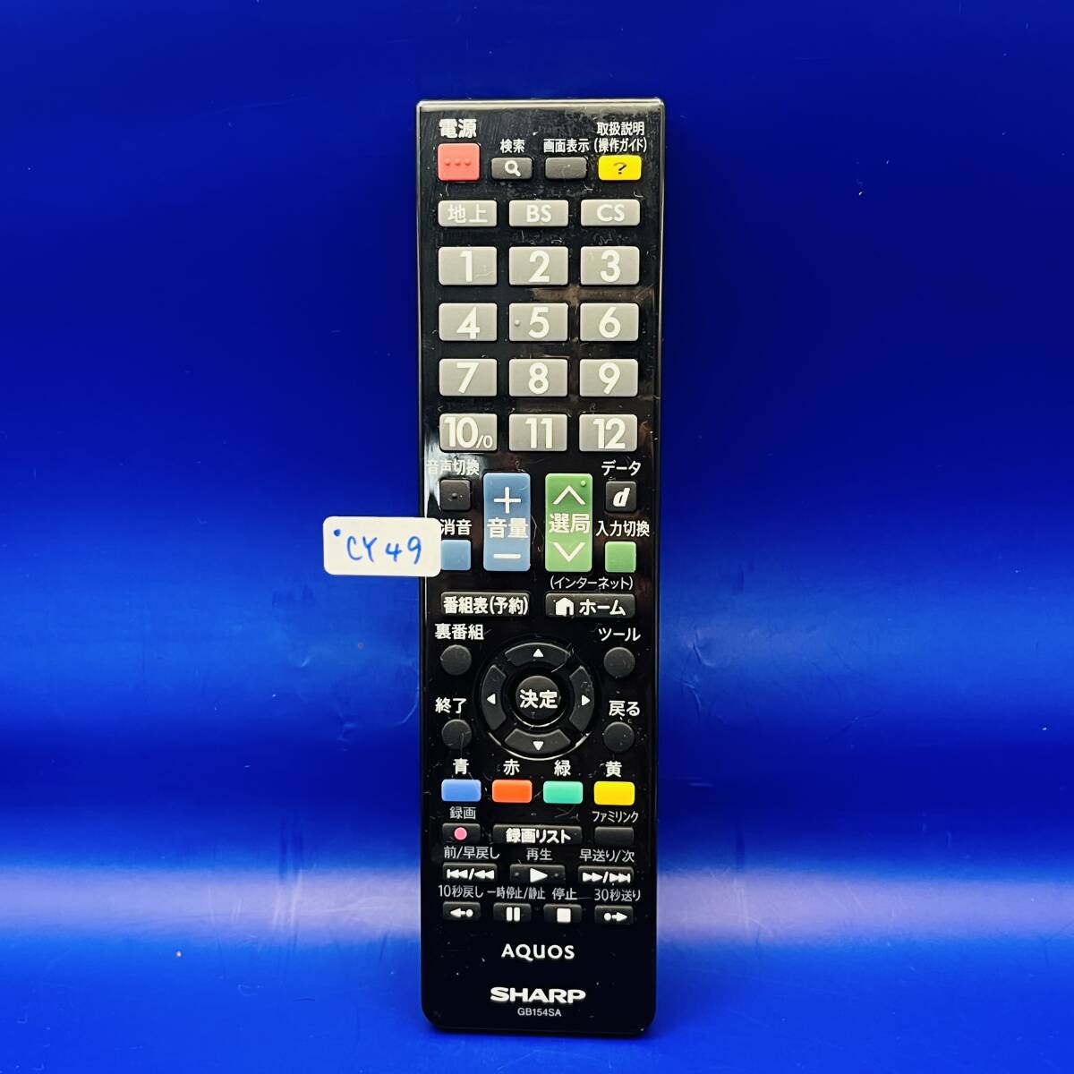CY49★動作保証あり シャープ  SHARP テレビ リモコン GB154SA