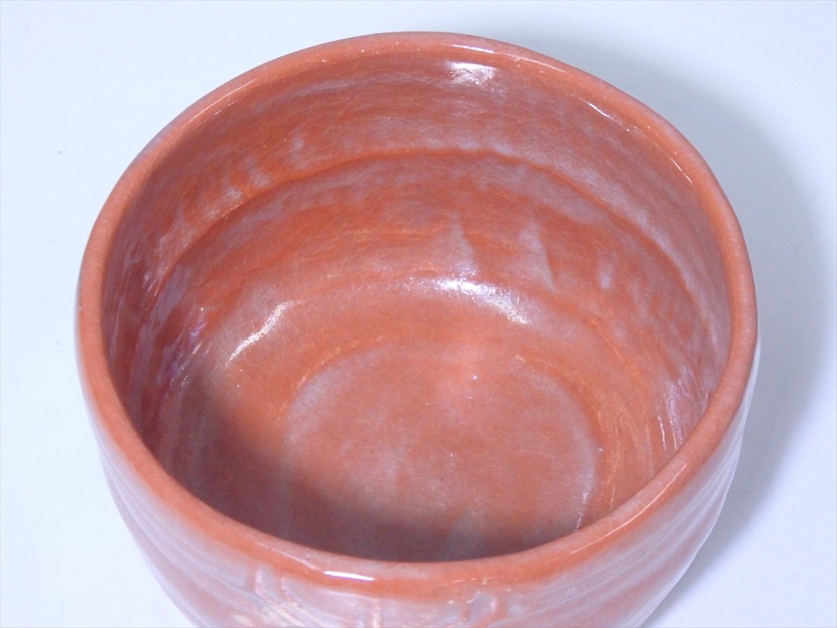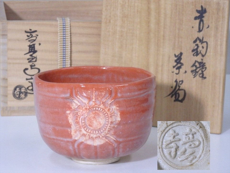 ★高台寺窯【釣鐘 赤楽茶碗 共箱】直径11.8cm 高さ8.5cm 茶道具 京焼 茶器 楽茶碗 セール!