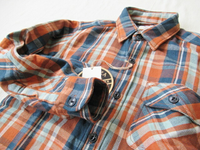 ALCARZA【ヘビーフランネルチェックシャツ】羽衣シャツ/ネルシャツ・ワークシャツ 629-00 07)SOFT ORANGE Mサイズ