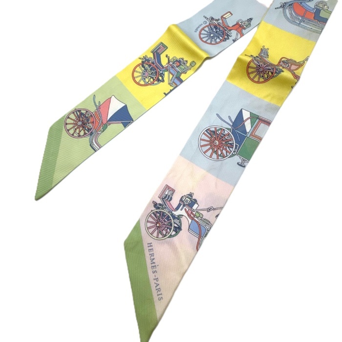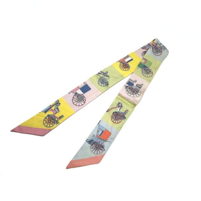 | 【コメント】 スモールサイズで髪やバッグ、手首に巻いたり、腰ベルトとしても使え、ファッションに合わせてアレンジ多様なスカーフです。パステルカラーで優しい印象。くすみ、シミ、汚れがあります。破れはなくまだまだご使用いただけるお品物です。 |