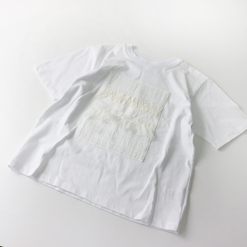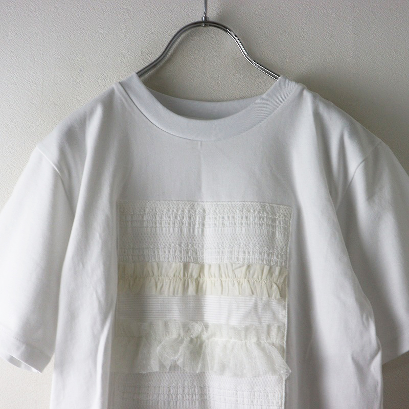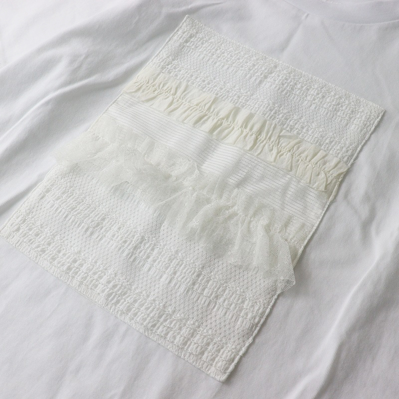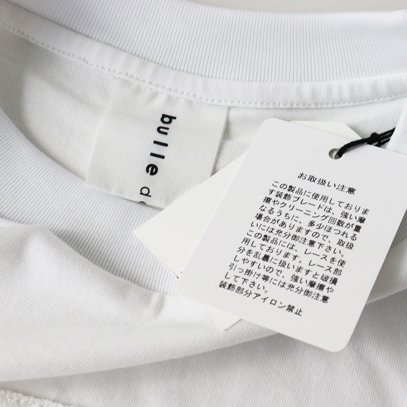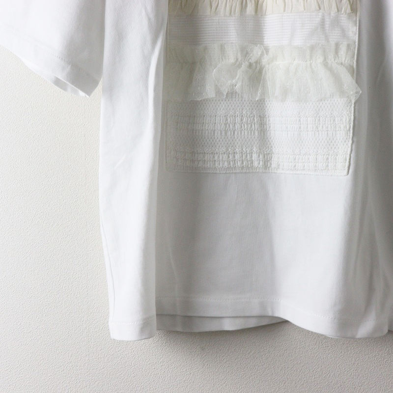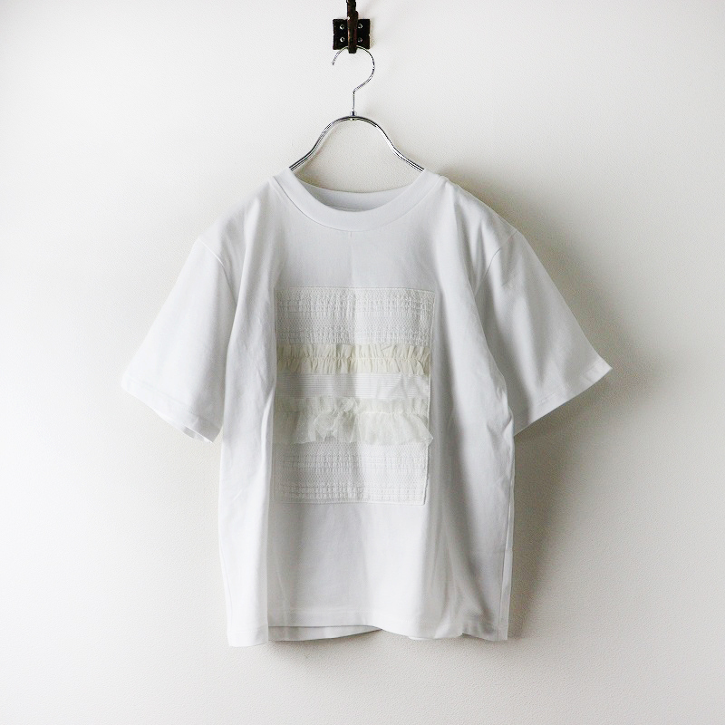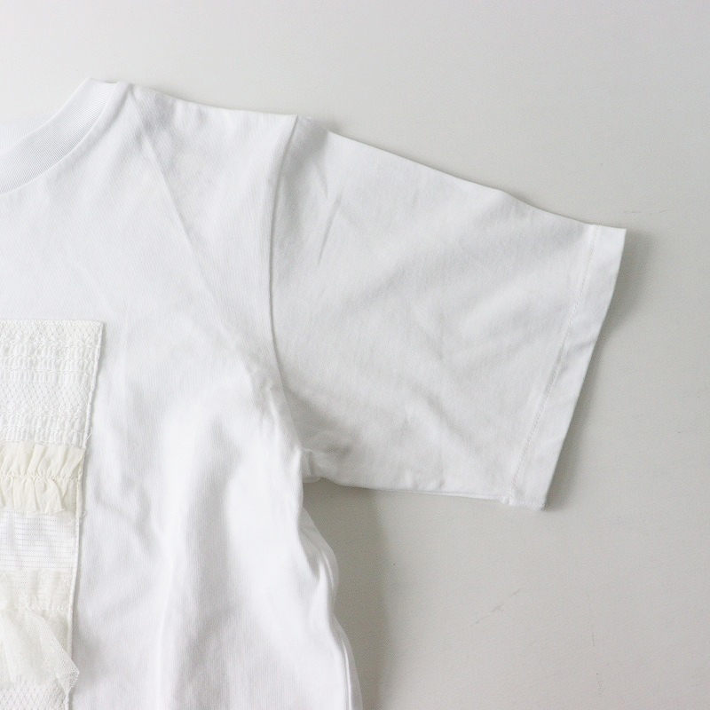 美品 2024年 ビュルデサボン bulle de savon Lace×tulle patchwork Tシャツ F ホワイト┃白 レースチュールTEE【2400014603972】