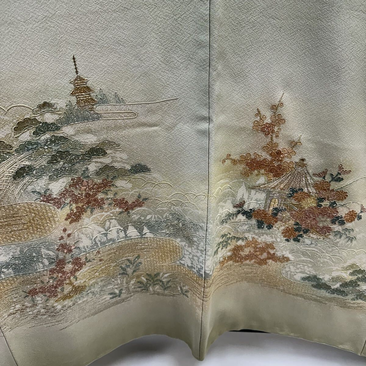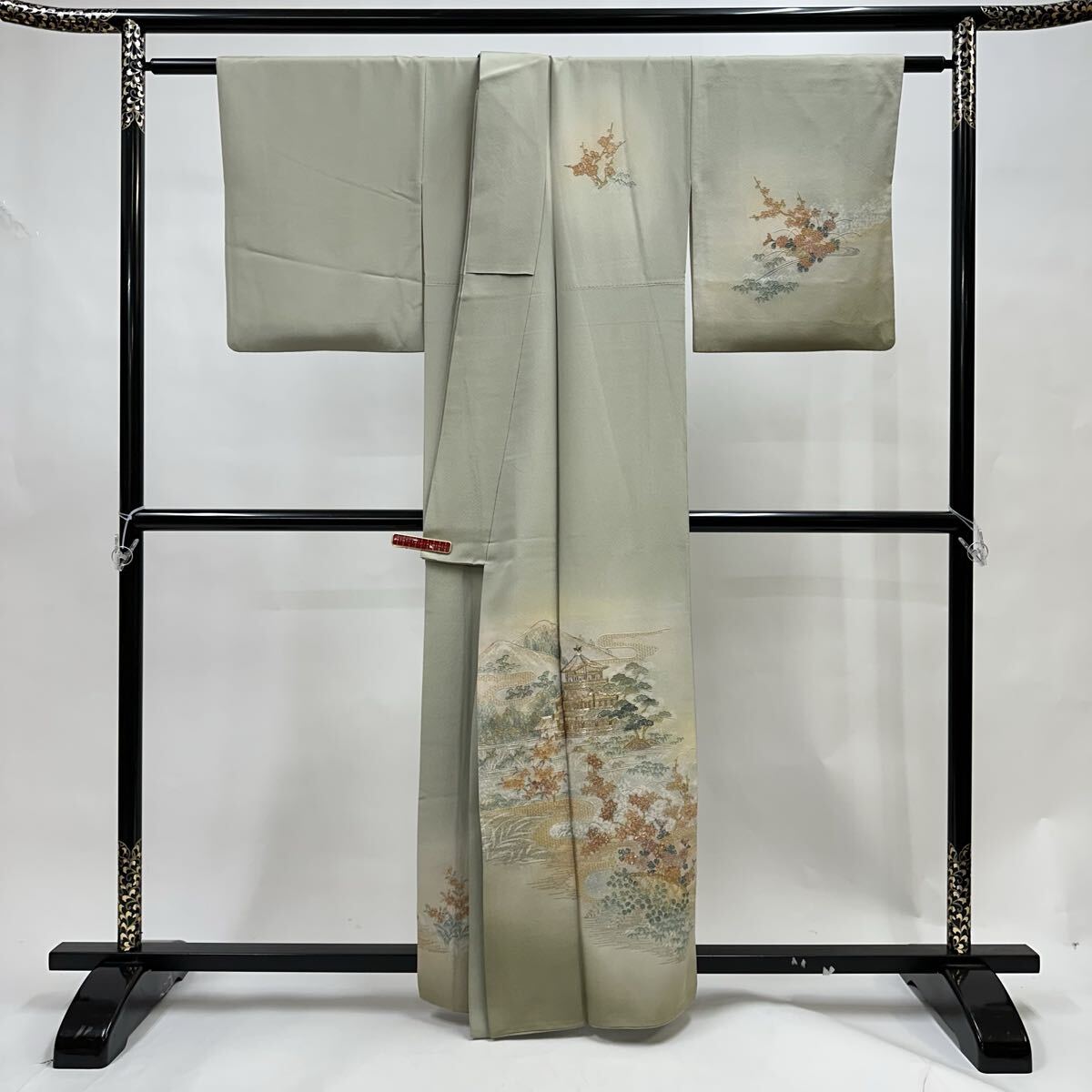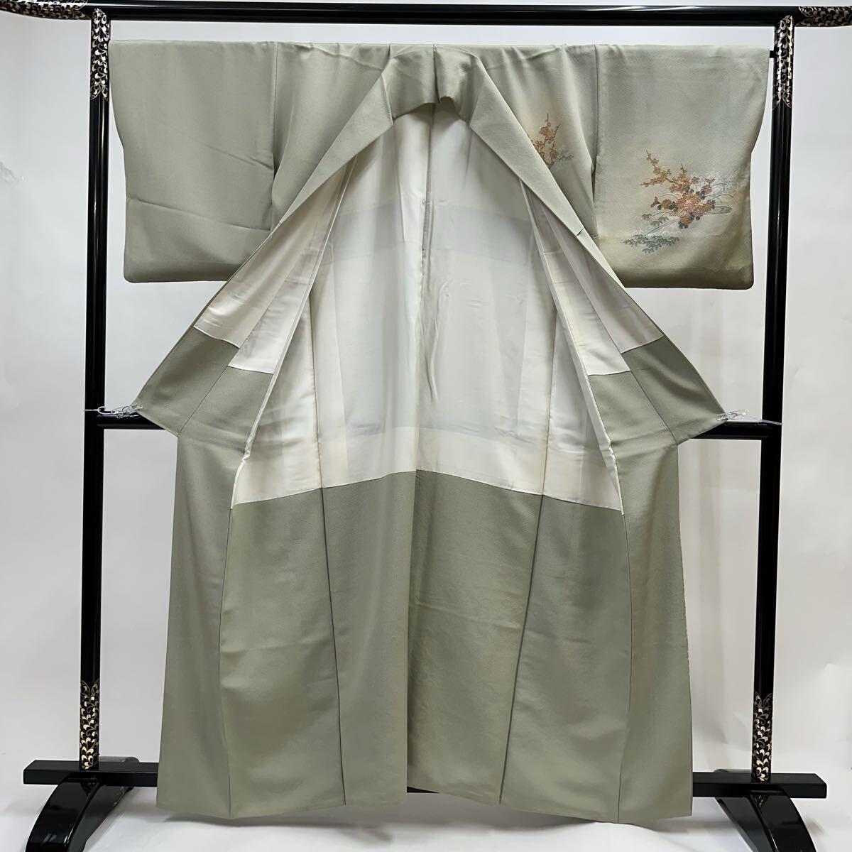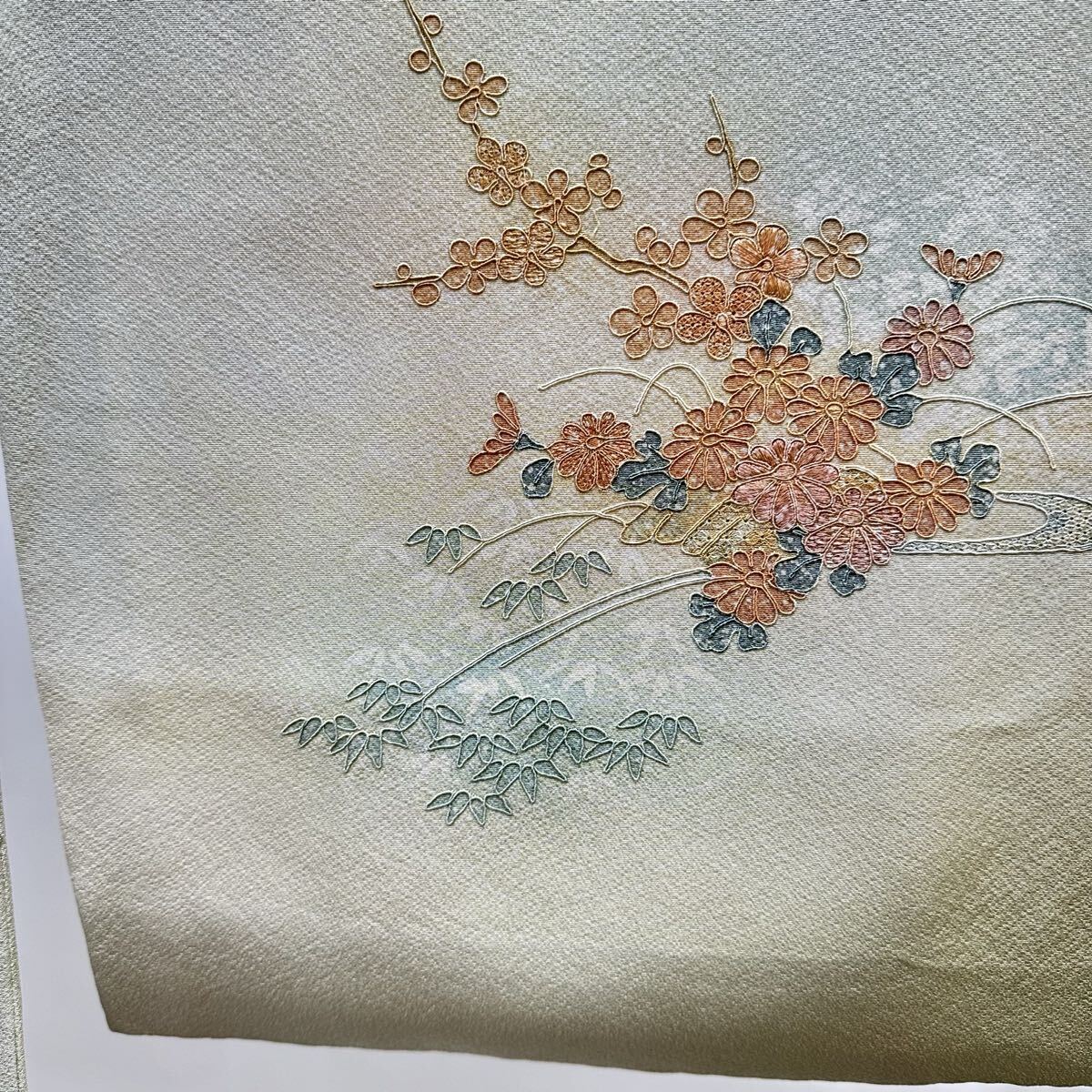 【七福】c869 訪問着 刺繍 正絹 袷仕立て 中国三大刺繍 汕頭刺繍 金駒刺繍 一つ紋 着物 逸品 身丈 約157cm 裄 約66cm
