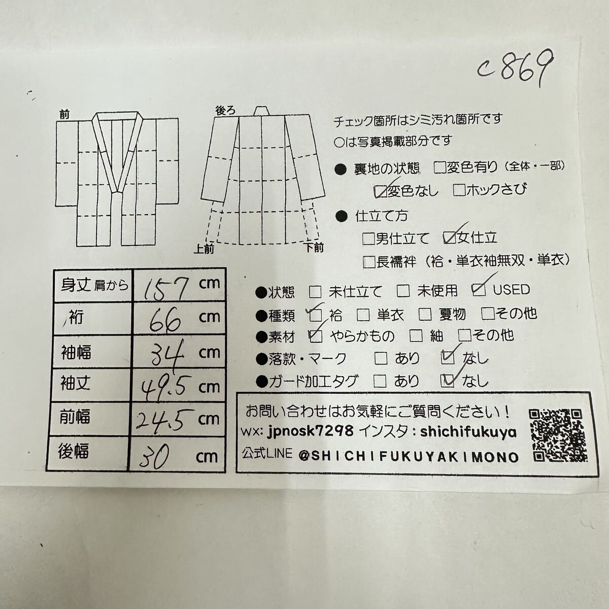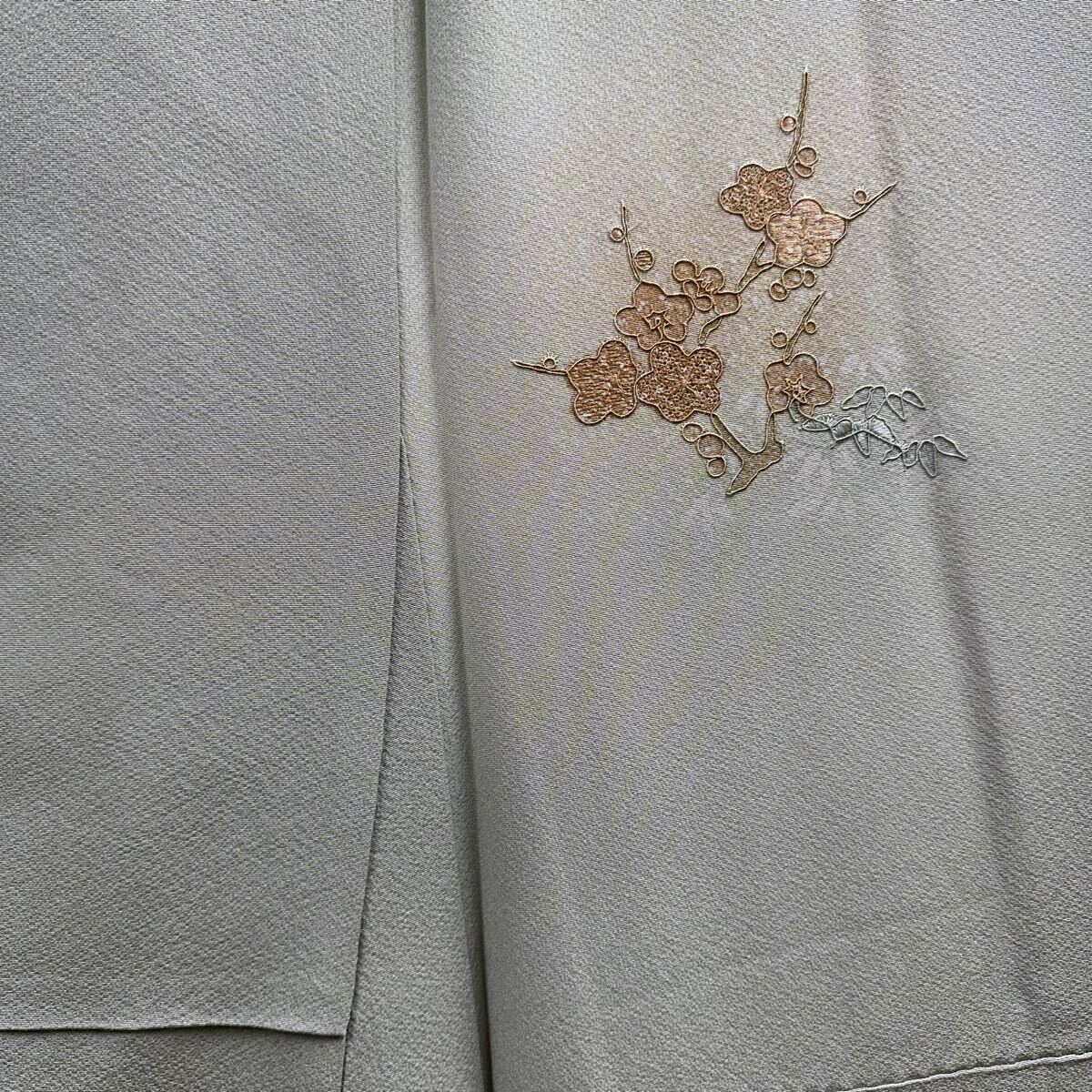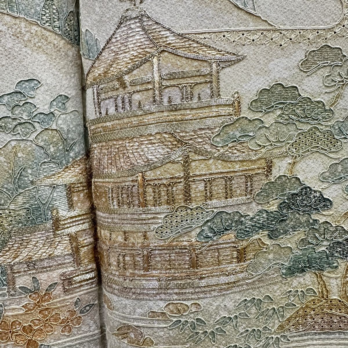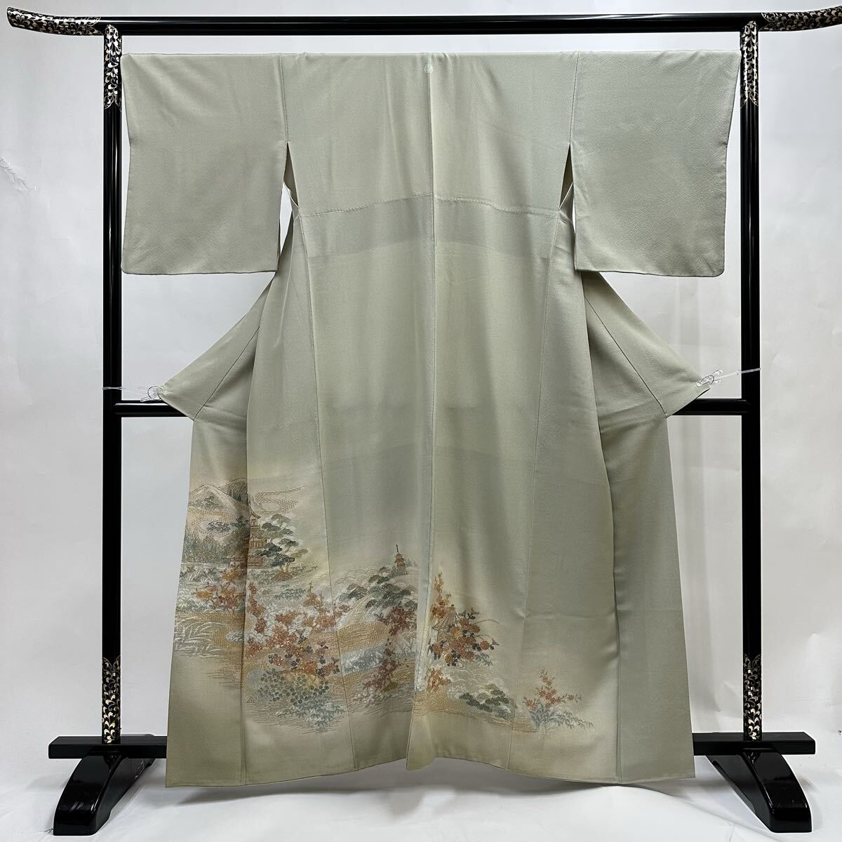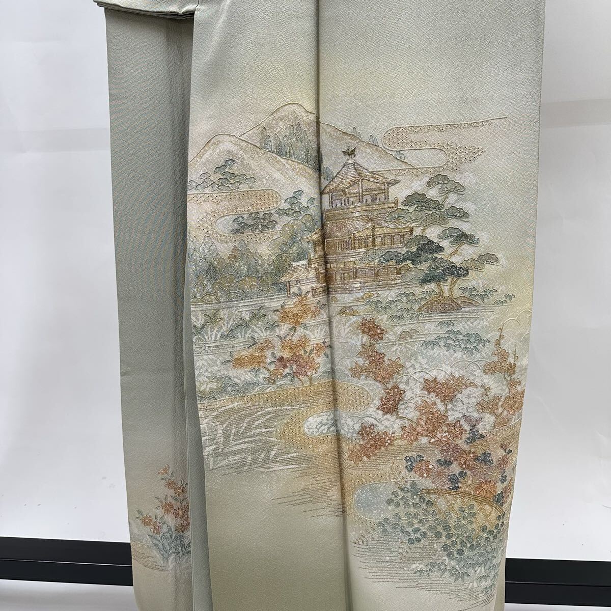 【七福】c869 訪問着 刺繍 正絹 袷仕立て 中国三大刺繍 汕頭刺繍 金駒刺繍 一つ紋 着物 逸品 身丈 約157cm 裄 約66cm