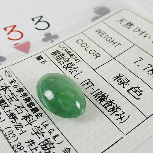 品名 /【SJ】新品 ヒスイ(ジェイダイト)7.78ct ジュエリールース 材質 / 天然ヒスイ(ジェイダイト) 縦・横 / (約)15.1mm 10.2mm 厚さ / (約)6.4mm 総重量 / 7.78ct 日宝協ソーティング付き 【SJ】/ 新品製品 品番 / ACD524 参考小売価格 / 270,000円 |