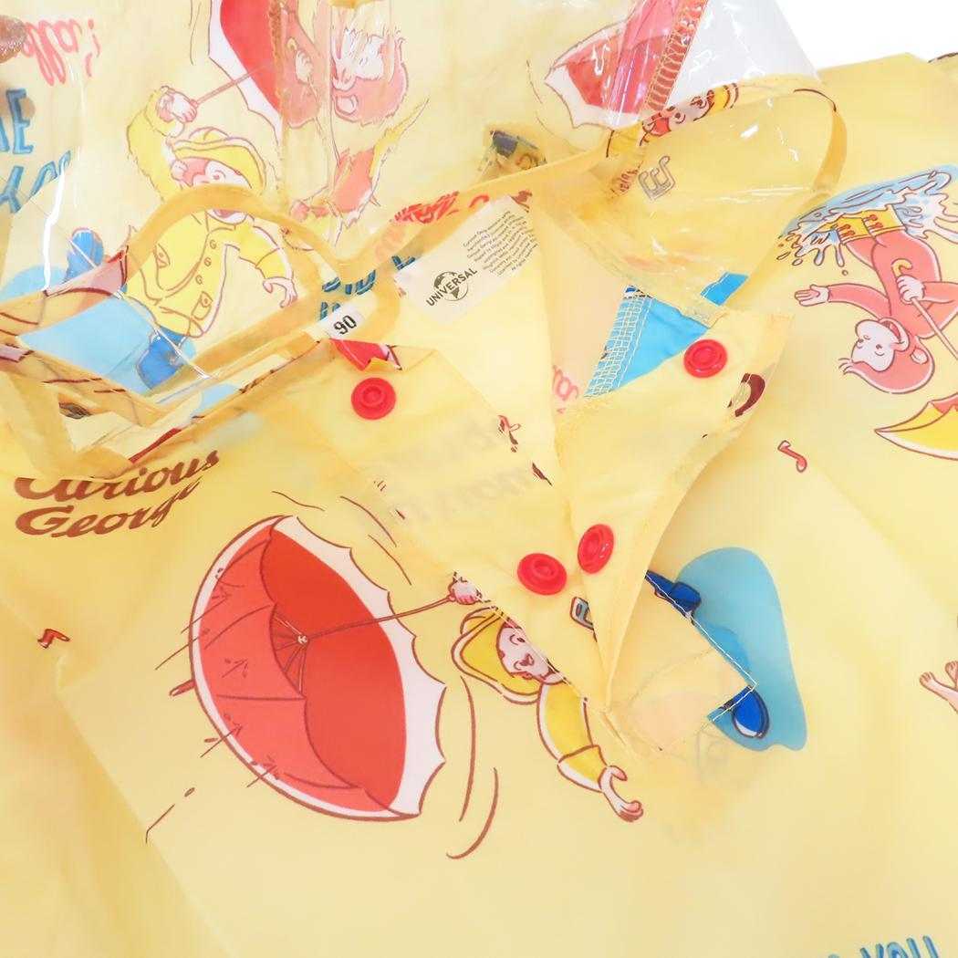 動きやすくて脱ぎ着もラクラク 世界中で愛されている人気絵本[キュリアスジョージ/おさるのジョージ]グッズにまたまた可愛いnewアイテム登場こちらは携帯に便利な収納袋付きの[キッズレインポンチョ]頭からかぶるだけでOKだからすぐに使えちゃいますフードの顔周りは透明なので周りが見えやすいそでからすそ全周に反射テープ付きで暗い道も安心!ほかにもいろんなデザインがあるからお気に入りをみつけてね。サイズ:着丈約50cm適応身長:80-100cm素材:ポリエステル、ポリ塩化ビニル