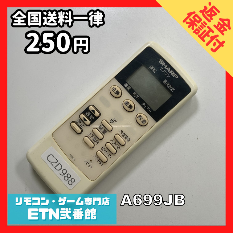 C2D988 【送料250円】エアコン リモコン / SHARP シャープ A699JB 冷房 暖房 動作確認済み★即発送★