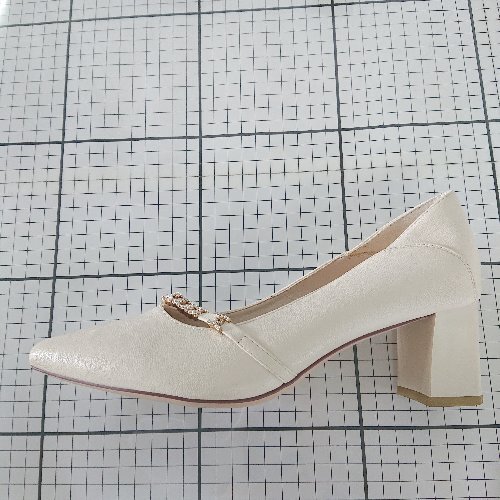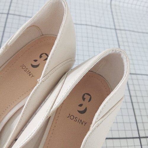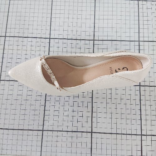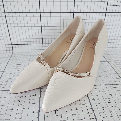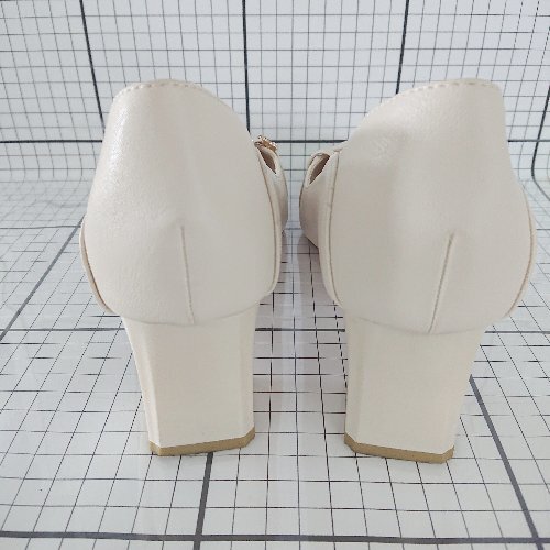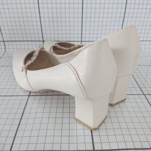 ◇ Θ JOSINY 装飾 ビジュー チャンキーヒール パンプス サイズ24.5(1.5) ライトベージュ系 レディース E