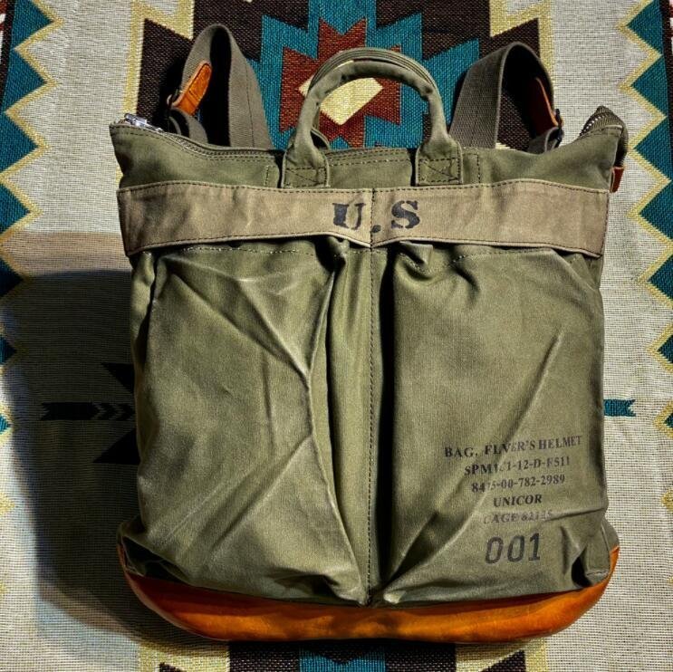 完璧なヴィンテージの再現がとってもクール ミリタリー復刻 2WAYタンカーバッグ 帆布鞄 ヘルメットバッグ アメカジ 新品未使用 バイク