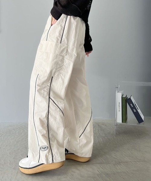 キーワード:カーゴパンツ レディース ウエストゴム ストレート ハイウエスト フルレングス ワイドパンツ 無地