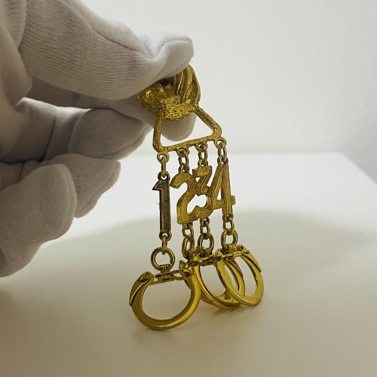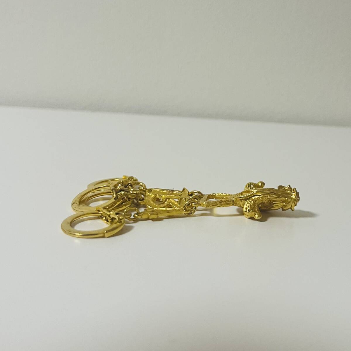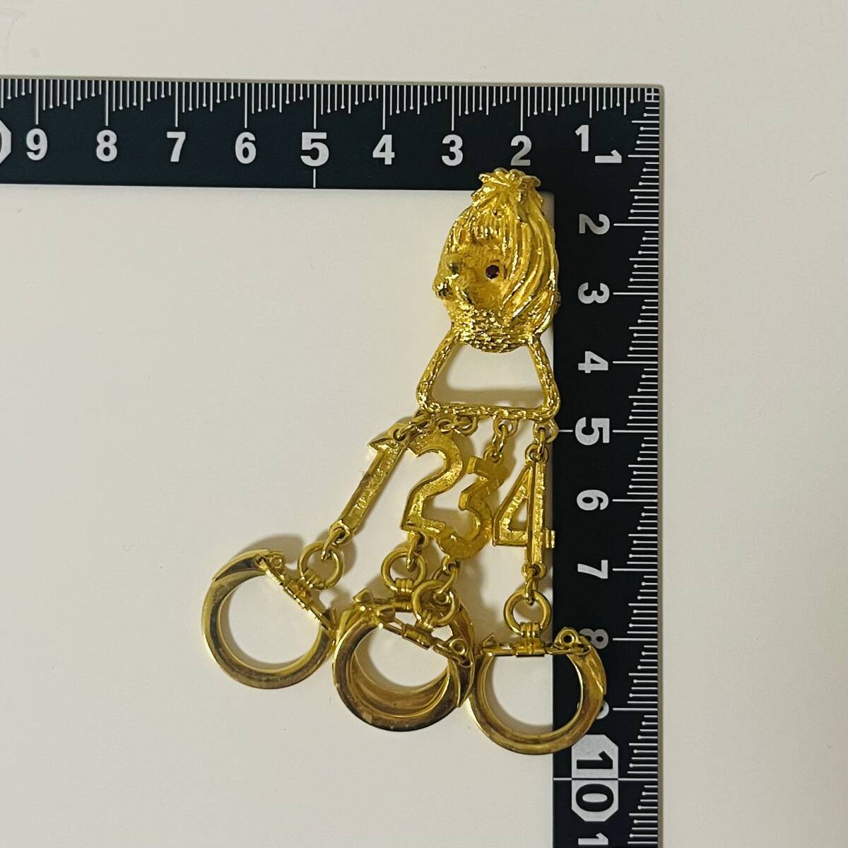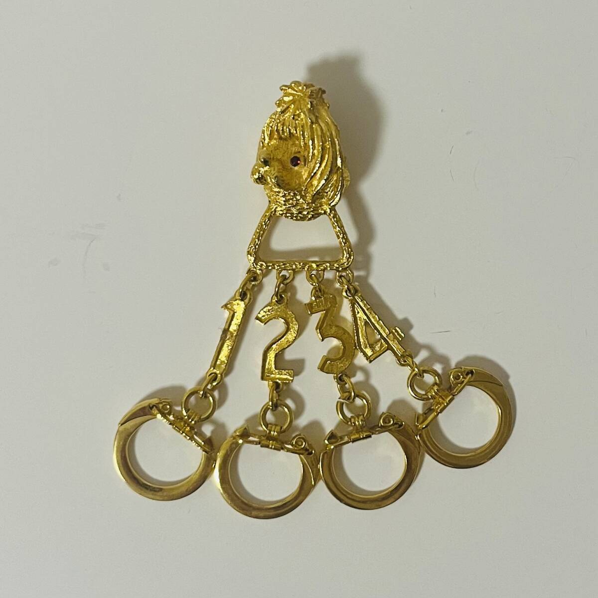 376 アンティーク ビンテージ アクセサリー キーホルダー 未使用保管品! ゴールドカラー カラーストーン 動物 犬 海外製