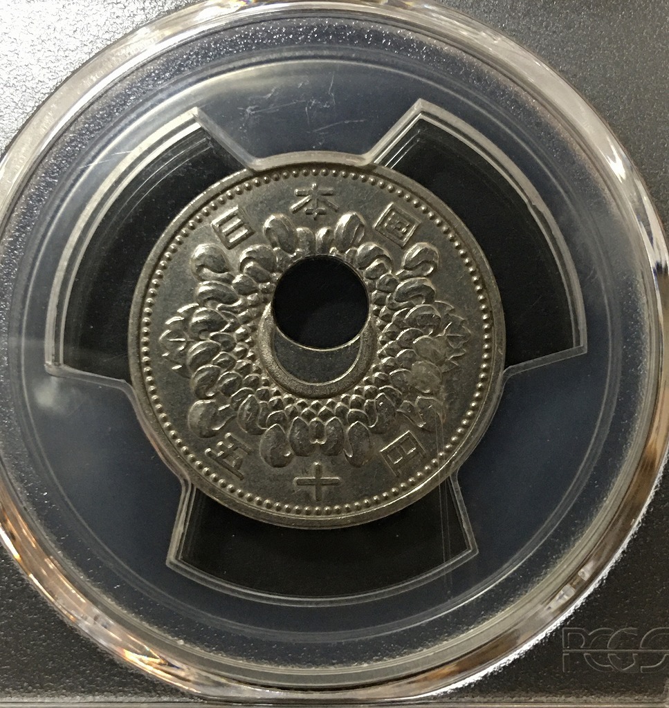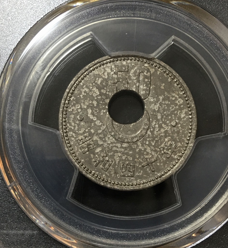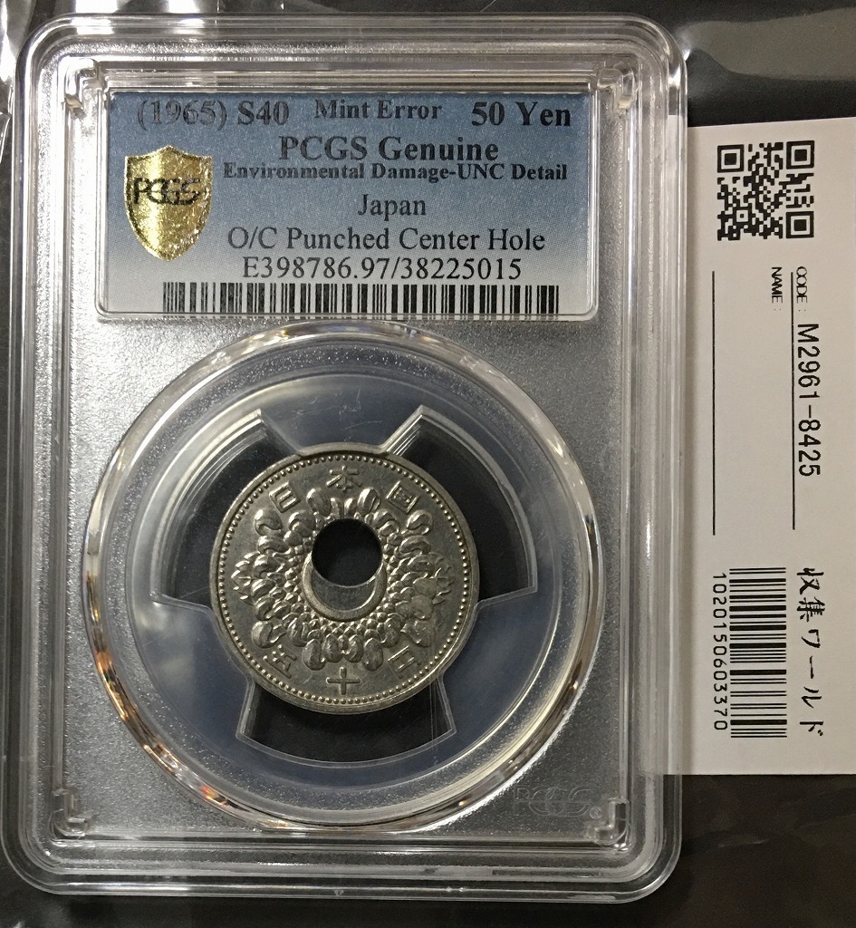 菊50円 穴ずれミントエラー 1965年S40年 希少品 PCGS-UNC鑑定済 収集ワールド