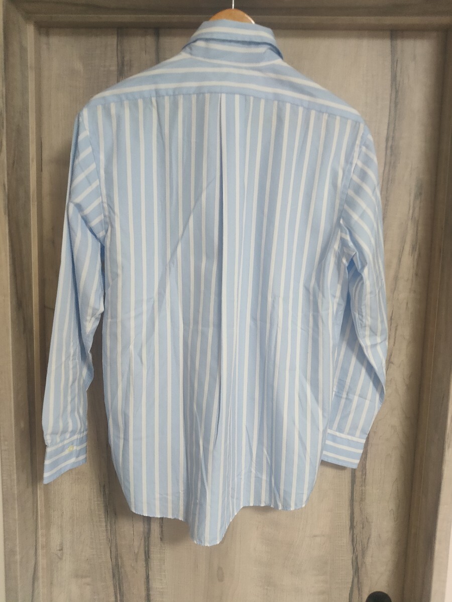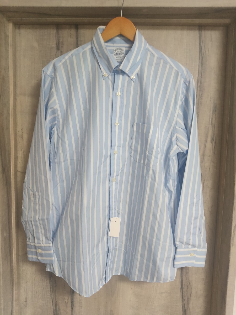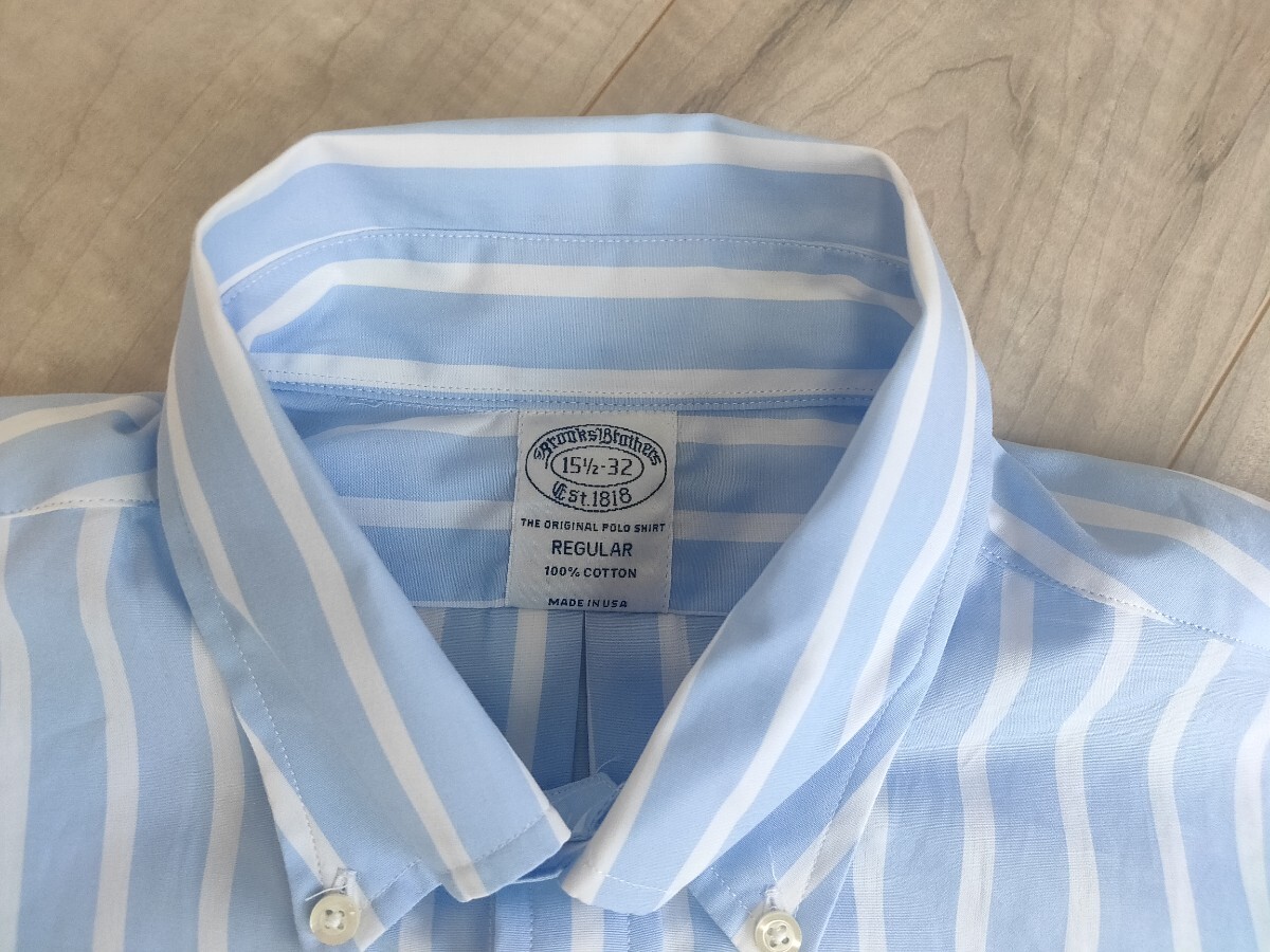 BROOKS BROTHERSのストライプボタンダウンシャツです。色は青×白、素材は100% COTTONです。アメリカ製です。近年のモデルです。