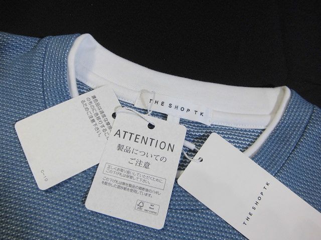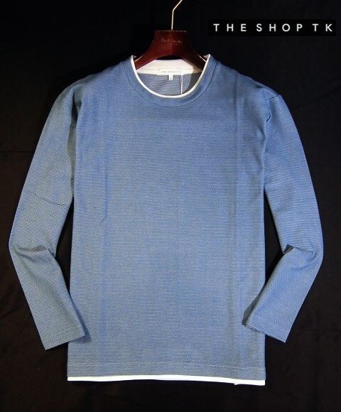I水09611新品▼ タケオキクチ THE SHOP TK フェイクレイヤード 長袖カットソー XL ブルー系 クルーネック 長袖Tシャツ 重ね着 ロンT