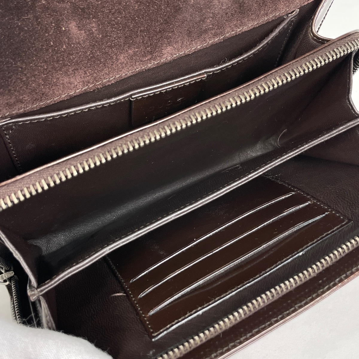 グッチ GUCCI ロゴ ショルダーバッグ 斜め掛け エナメル ウォレット ショルダーバッグ パテントレザー ブラウン 0072015 レディース 【中古】 |