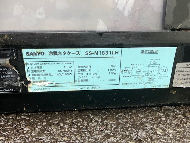 サンヨー★業務用大型冷蔵ネタケース★カウンター冷蔵ショーケース★ガラス冷蔵庫★SS-N1831LH★180×30×28★フクシマダイワホシザキ