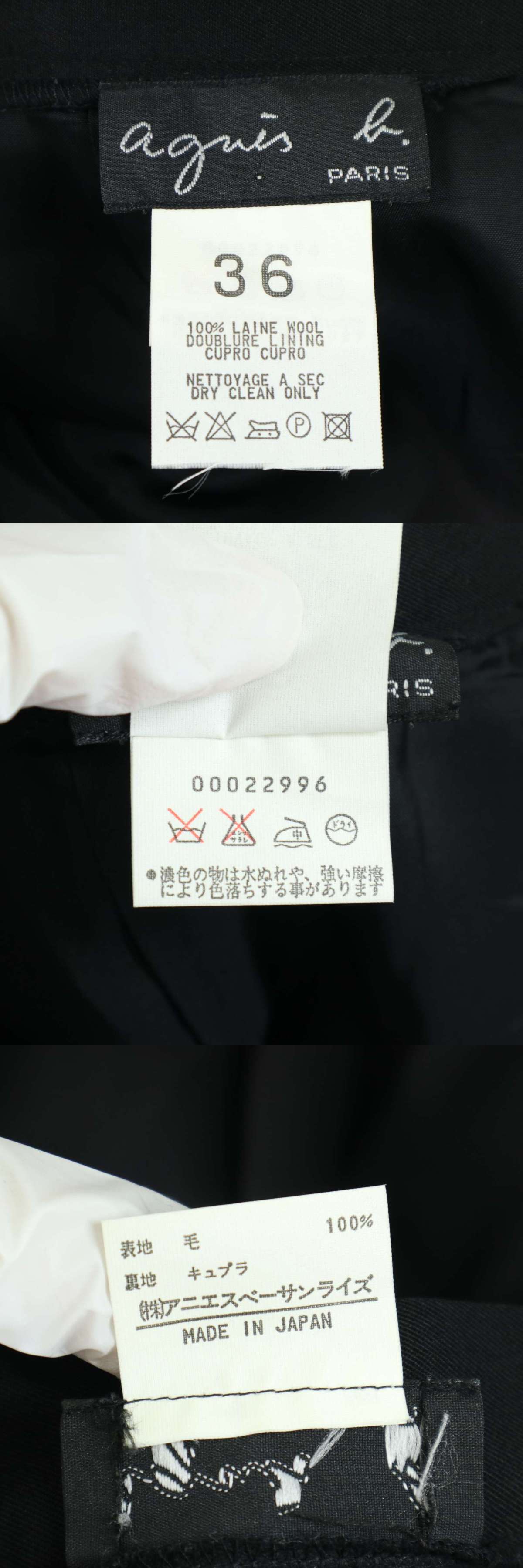 agnes b. アニエスベー 秋冬 ウール100%★ タイト スカート Sz.36 レディース 黒 日本製