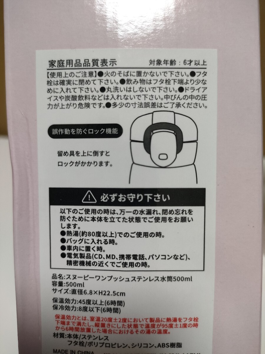 スヌーピー 水筒 500ml ダイレクト ワンタッチ ステンレス ボトル