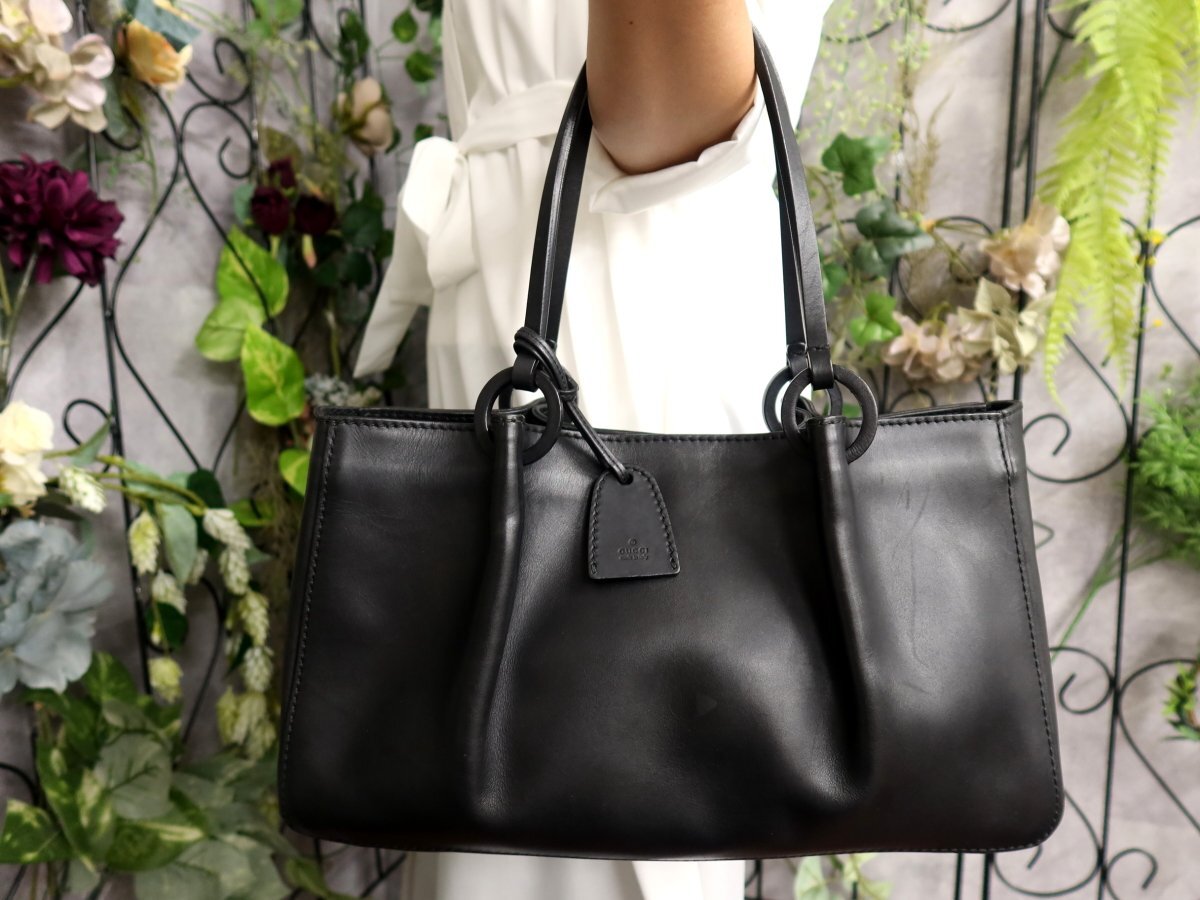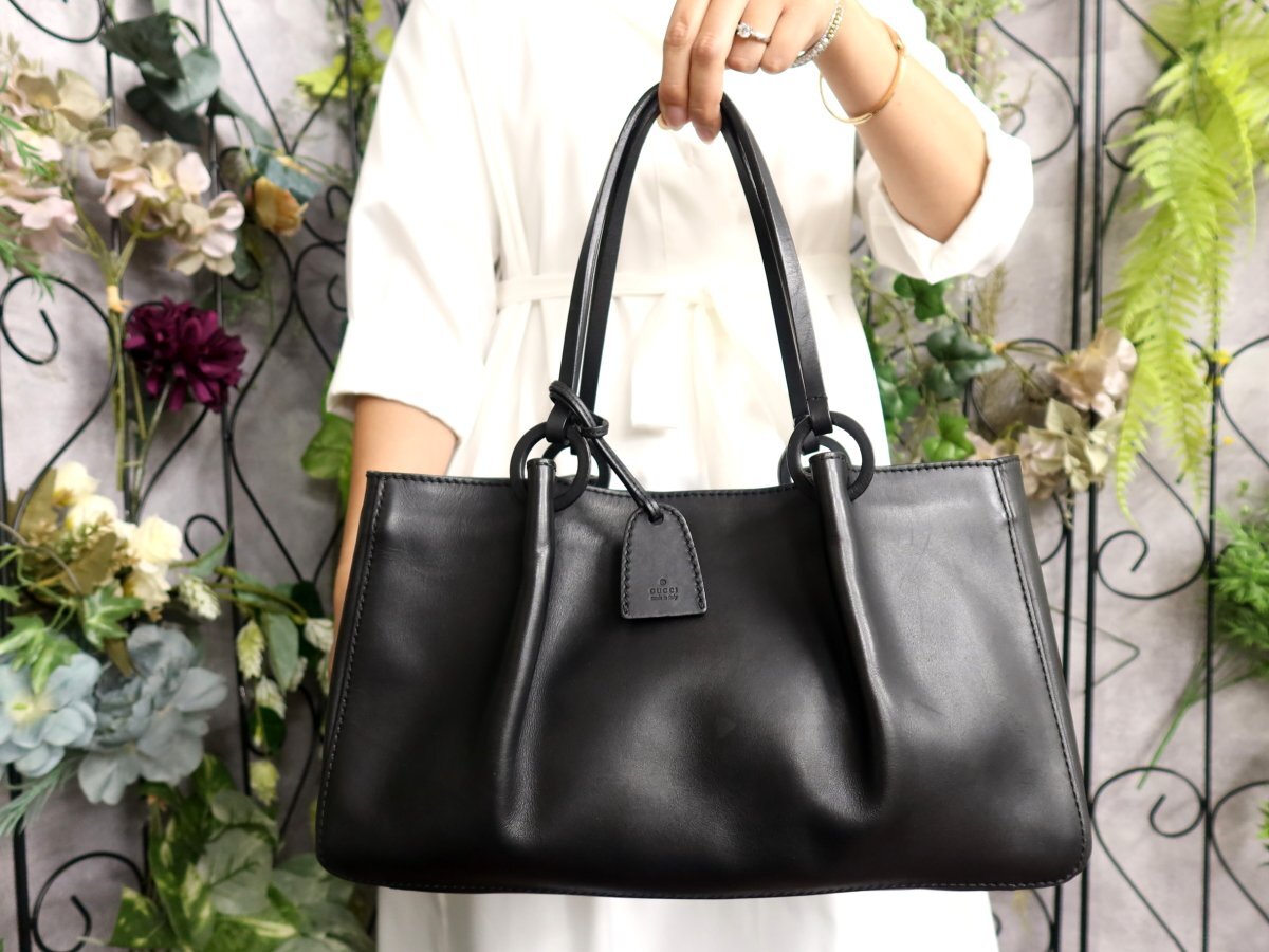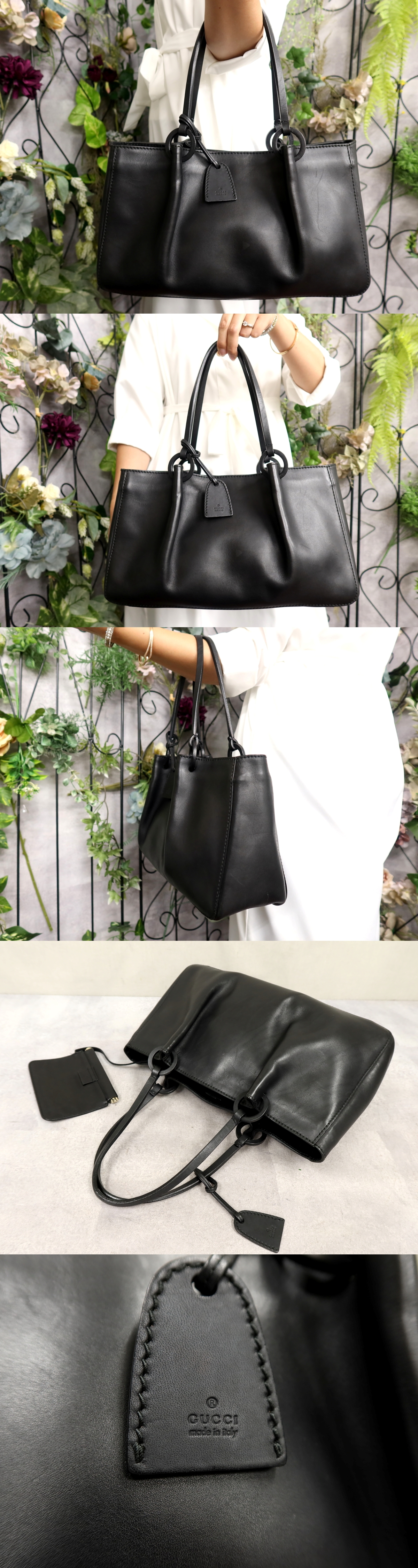 ●超美品●GUCCI グッチ●カーフ レザー 本革●トート バッグ●黒●ゴールド金具●腕掛け●イタリア製●ヴィンテージ●B5 かばん●Js60341