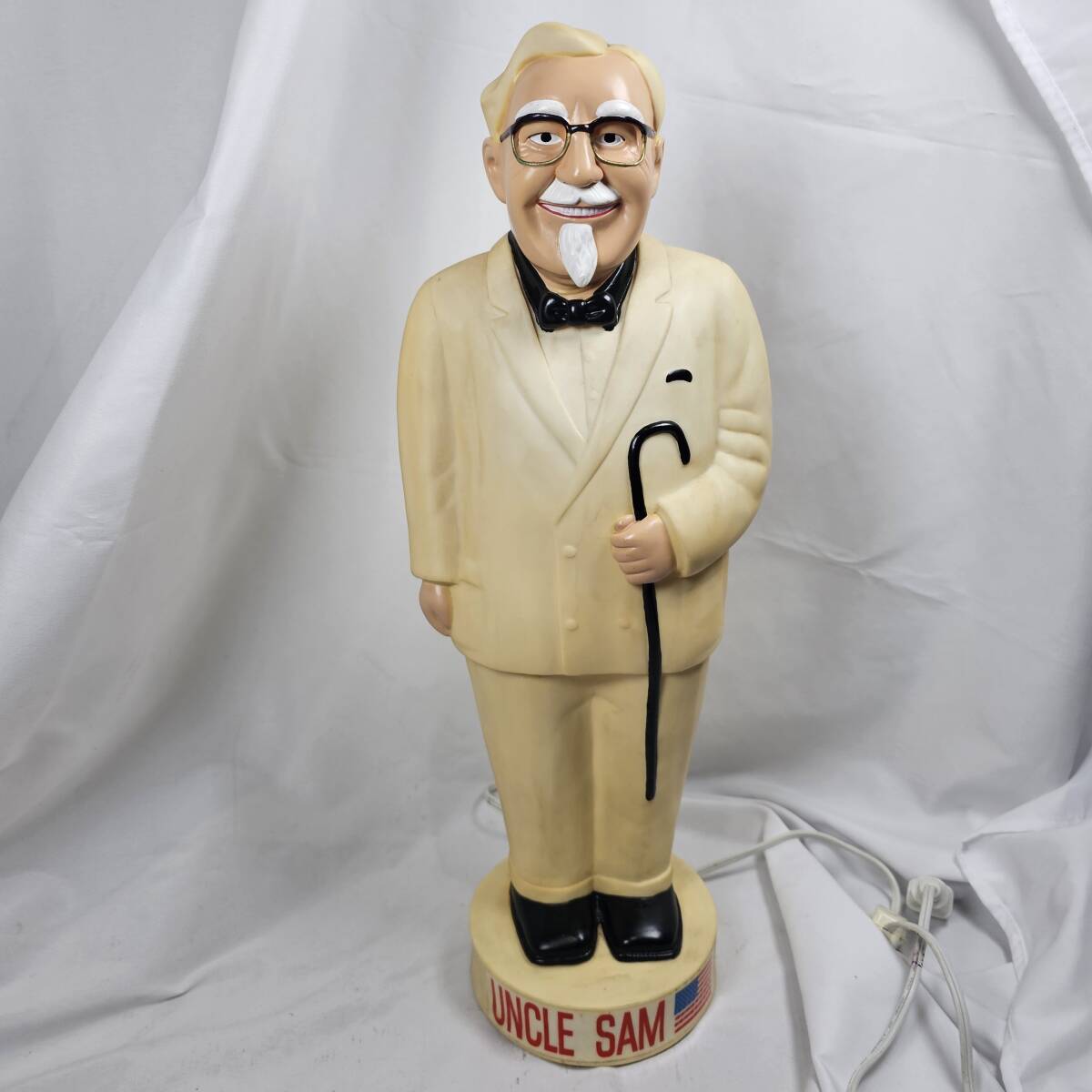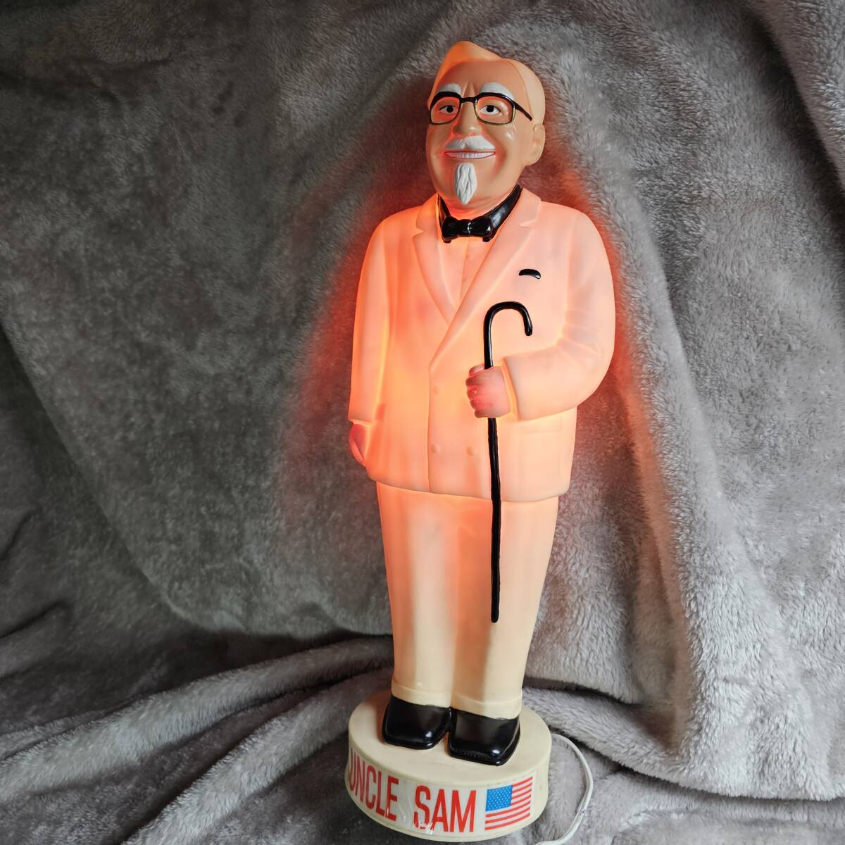 希少なKFC(ケンタッキーフライドチキン)のカーネル・サンダースのキャラクターランプです。 箱には「CHARACTER LAMP」とあり、当時のヴィンテージ品です。 柔らかな明かりが、お部屋をレトロな雰囲気にしてくれます。 製造年代:不明 サイズ:高さ約50cm、幅約20cm 【商品の状態】 動作:ランプの点灯は確認済みです。 外観:経年による若干のくすみや汚れ、小傷があります。目立つ大きなダメージはありません。 付属品:元箱があります。 あくまで古いもののため、ビンテージ品にご理解のある方にご購入いただければ幸いです。 #ケンタッキー #KFC #カーネルサンダース #ランプ #ライト #昭和レトロ #ヴィンテージ #希少 種類...アンティークドール