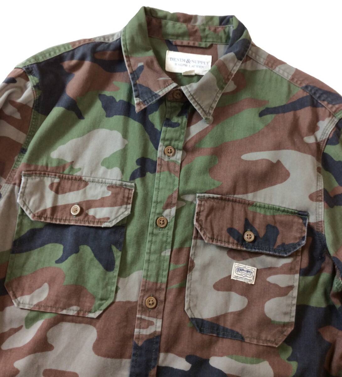 DENIM&SUPPLY RALPH LAUREN デニム&サプライ ラルフローレン カモフラ 迷彩 長袖 シャツ オリーブグリーン メンズ M