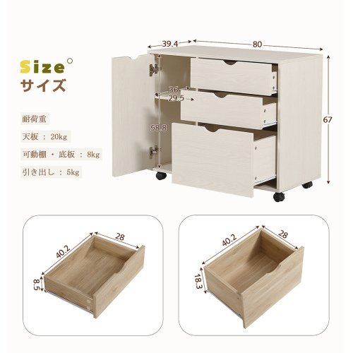 • 【広々とした収納スペース】十分な収納スペースを確保した幅80cmの収納ラック。深めの引き出しで収納力抜群
