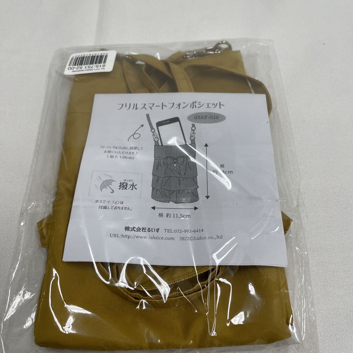 【1円〜】スマートフォンポシェット フリル マスタード ポシェット スマホケース ストラップ付き【TU01726】