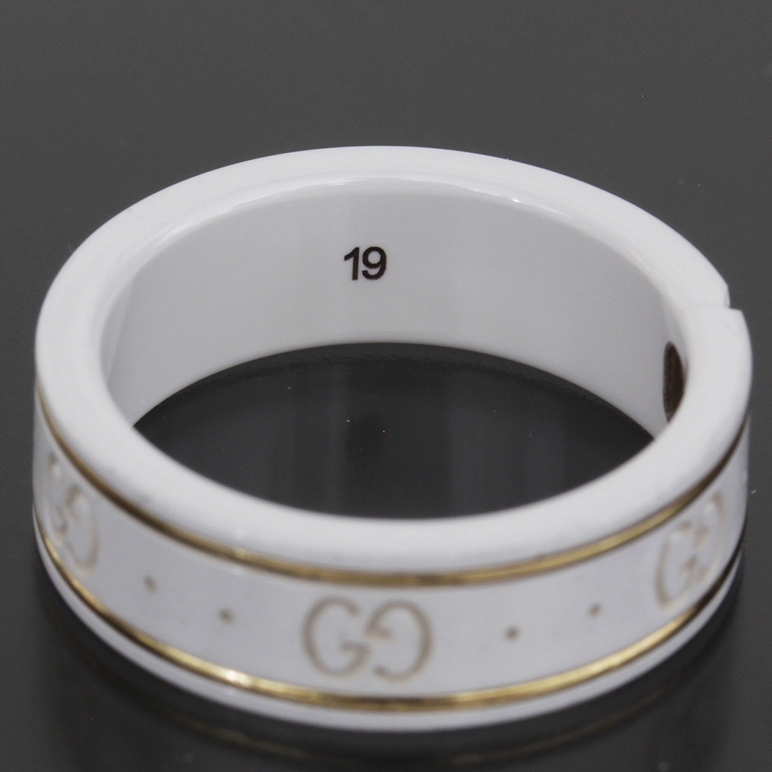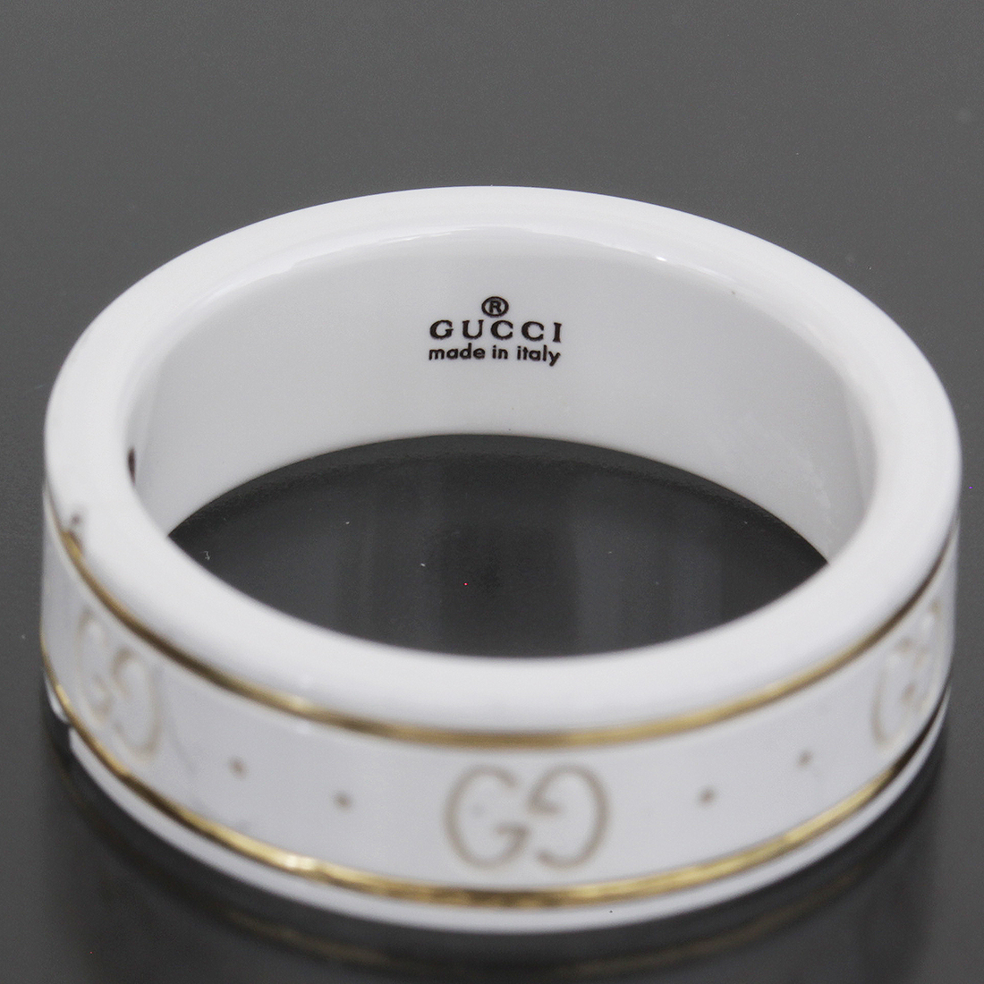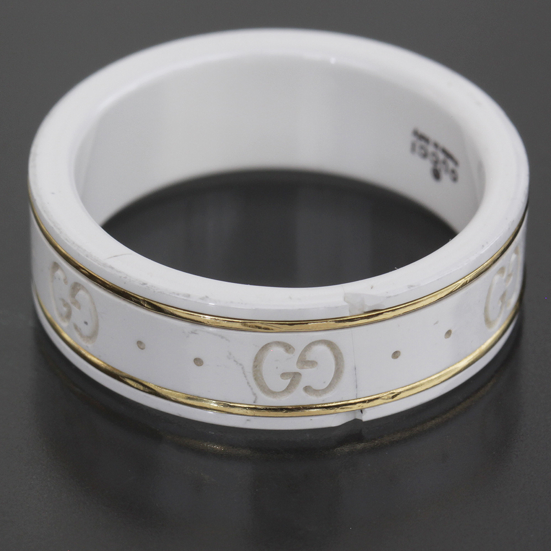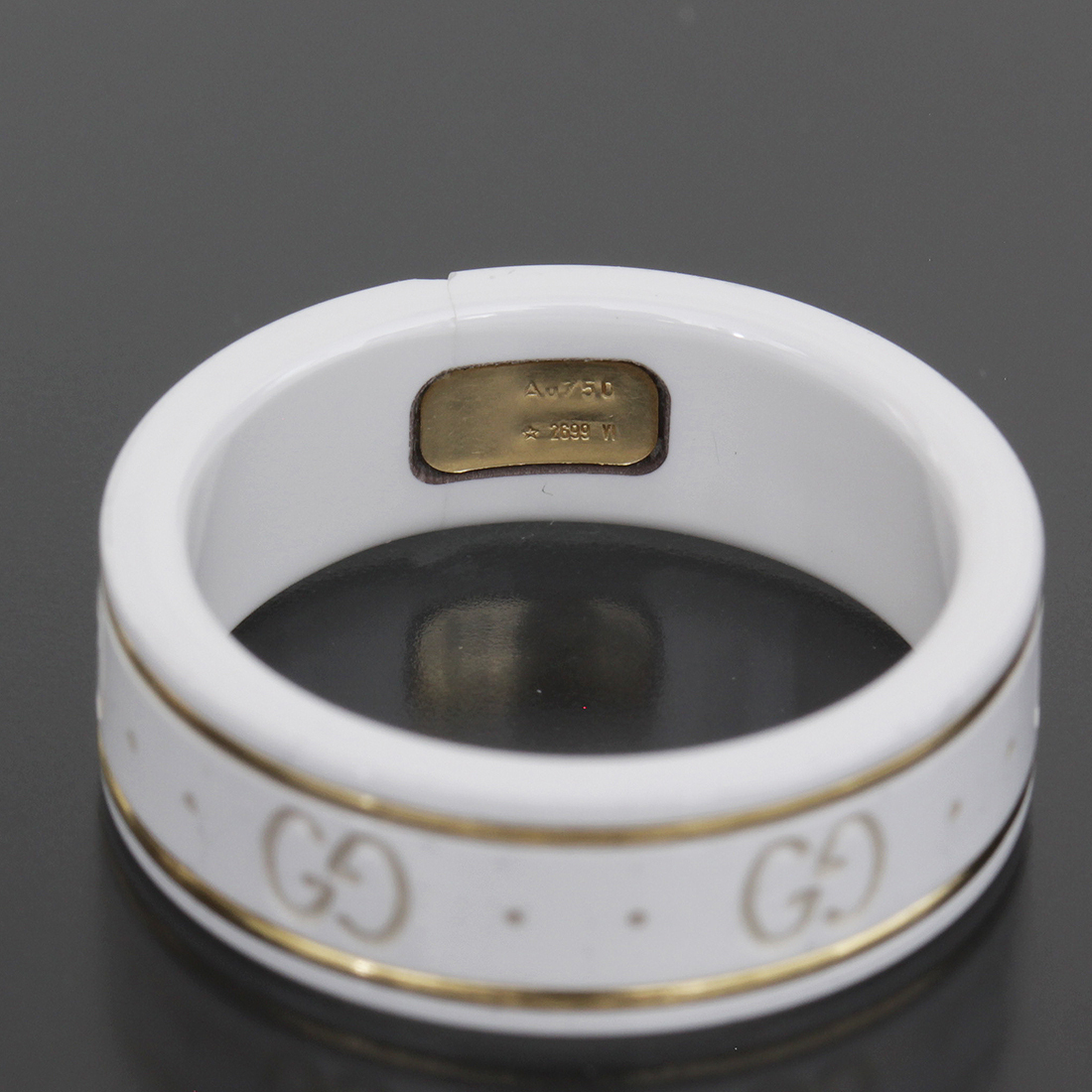 グッチ GUCCI アイコン リング 18号 K18YG 箱付 メンズ 特価●指輪 7mm幅 ホワイト セラミック 6351A