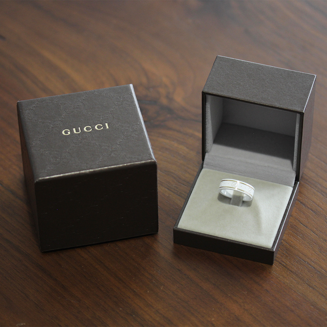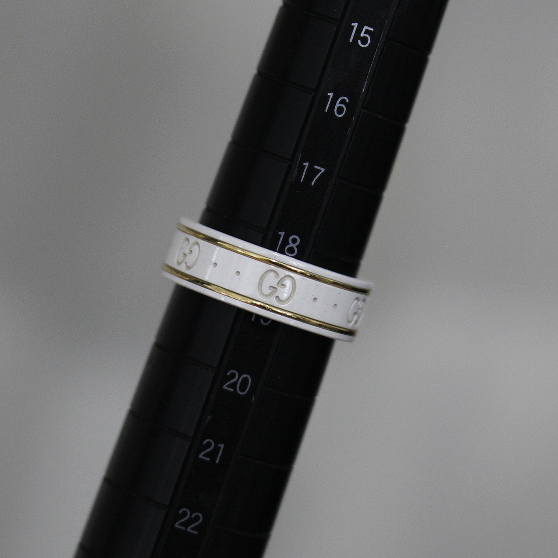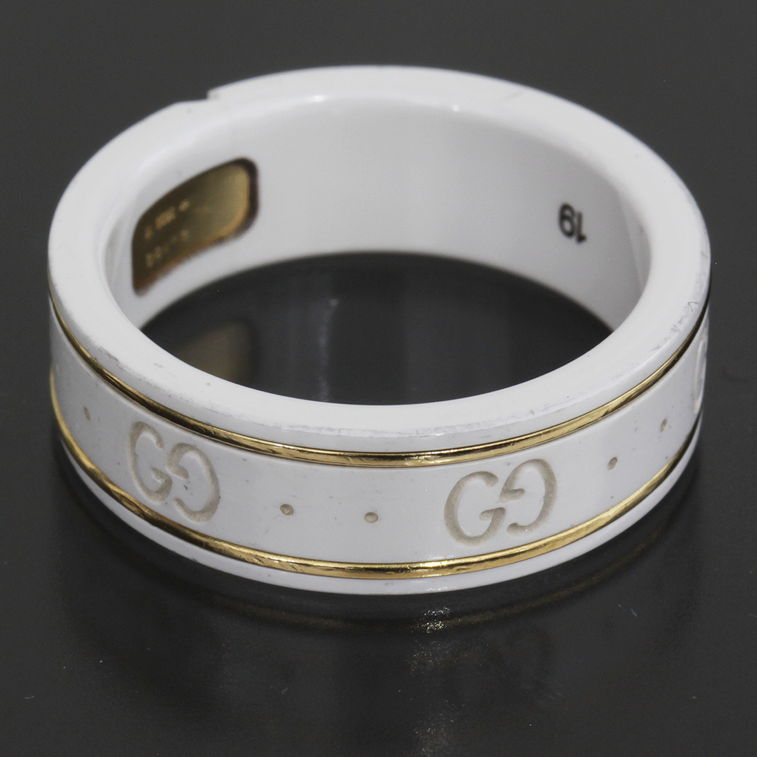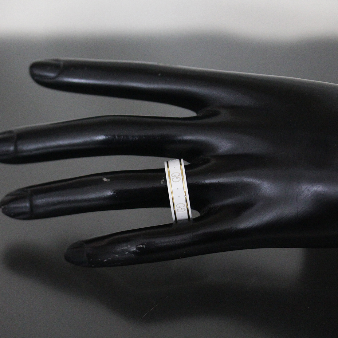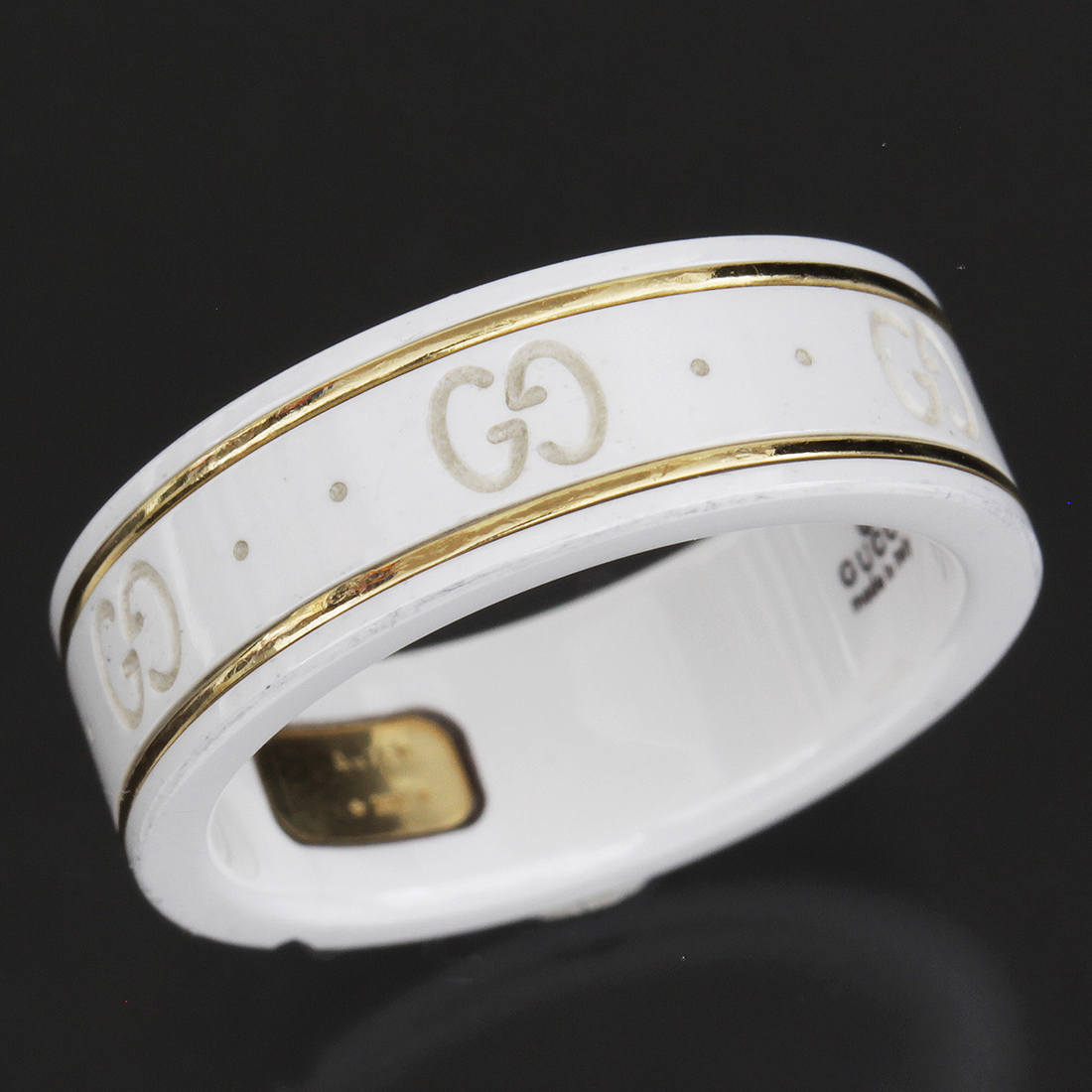 グッチ GUCCI アイコン リング 18号 K18YG 箱付 メンズ 特価●指輪 7mm幅 ホワイト セラミック 6351A